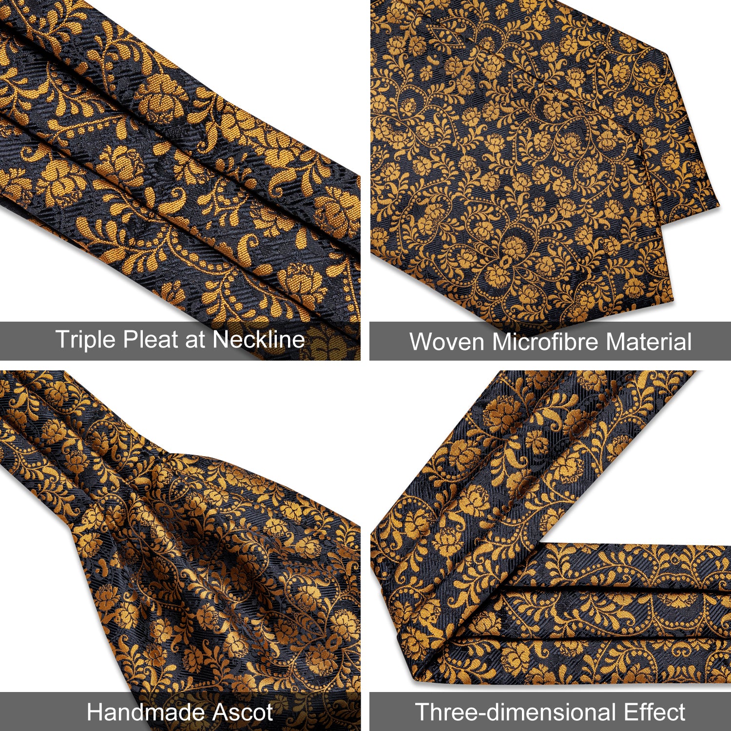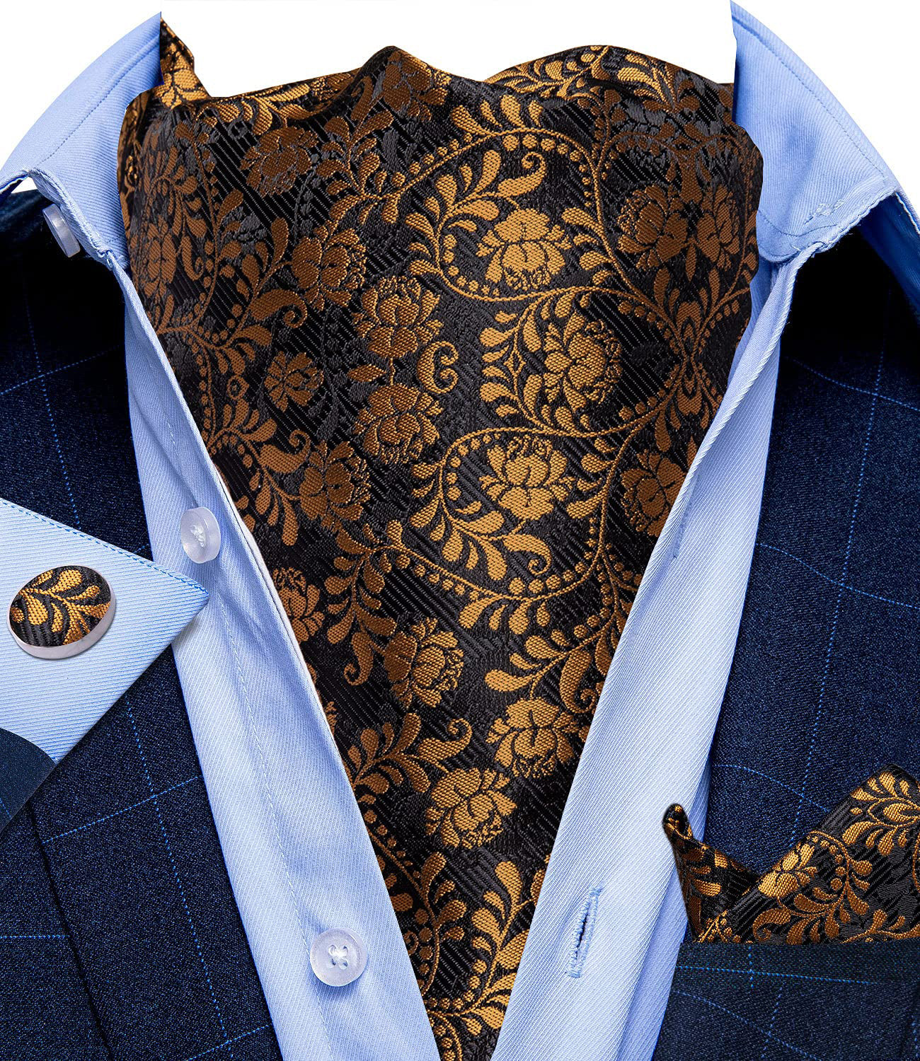 Cravat Set: Packing list:ascot, woven pocket square, matching cufflinks, box. Cravat ascot are made of thick and high quality fabric, soft and comfortable. It's a perfect gifts for Father's day, Birthday, Christmas Day, Valentine's Day, Thanksgiving Day etc