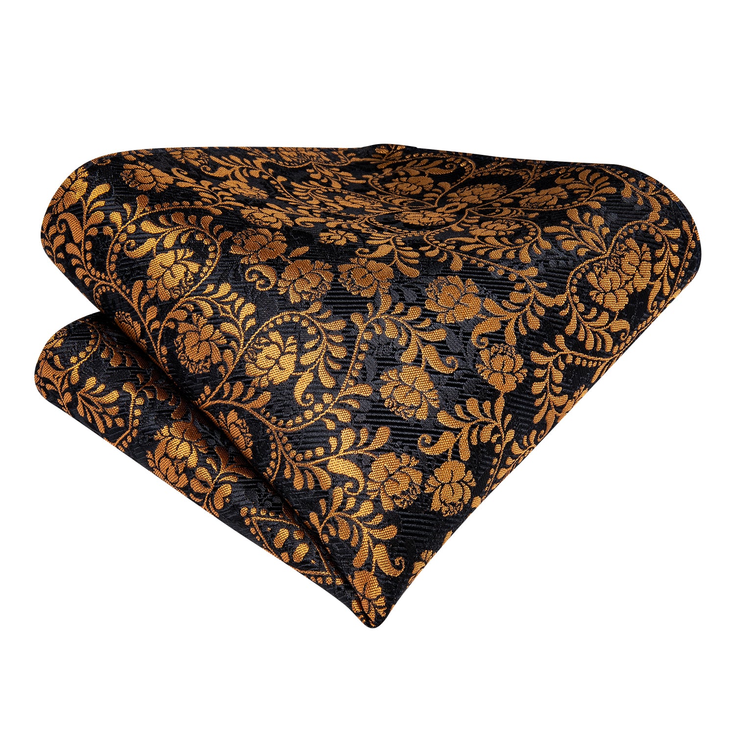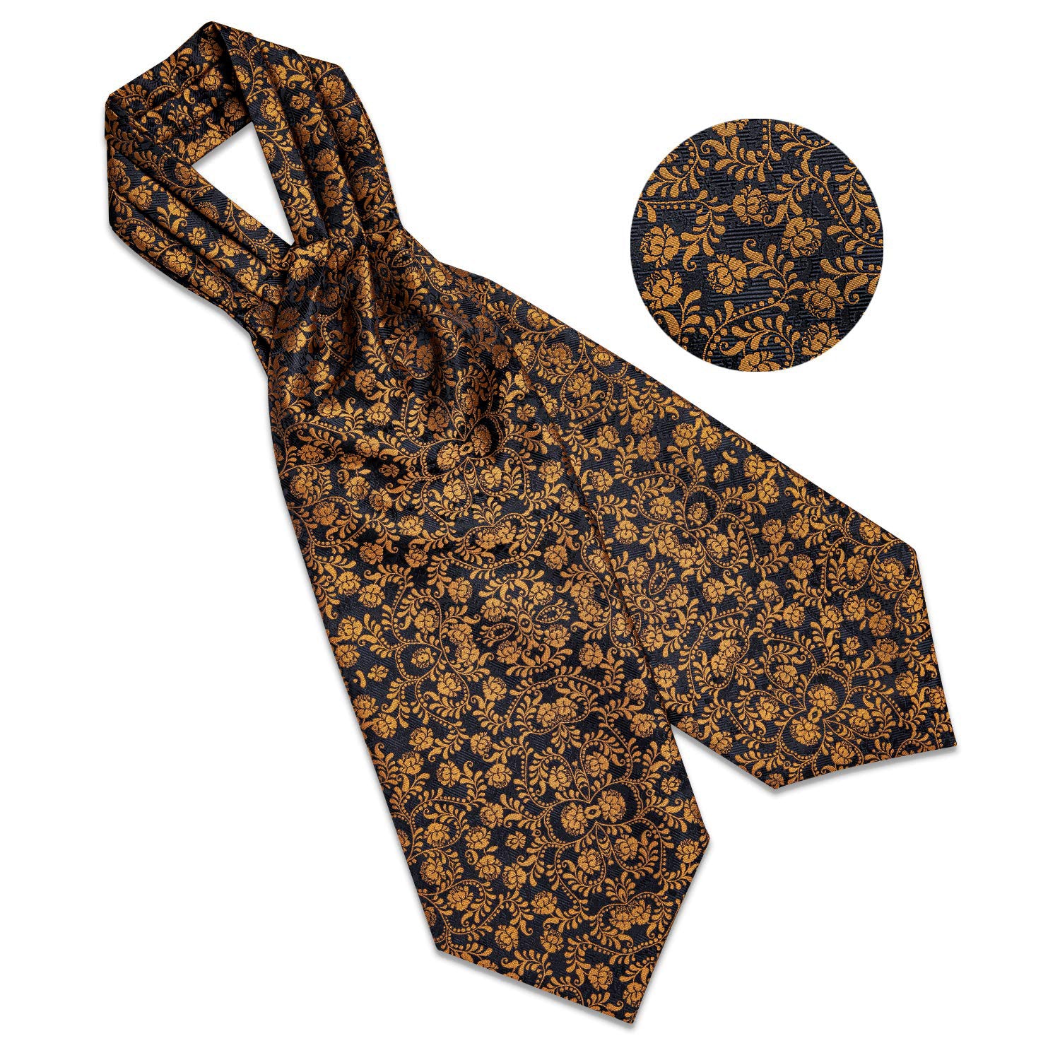 Brown Black Floral Silk Cravat Woven Ascot Tie Pocket Square Handkerchief Suit Set