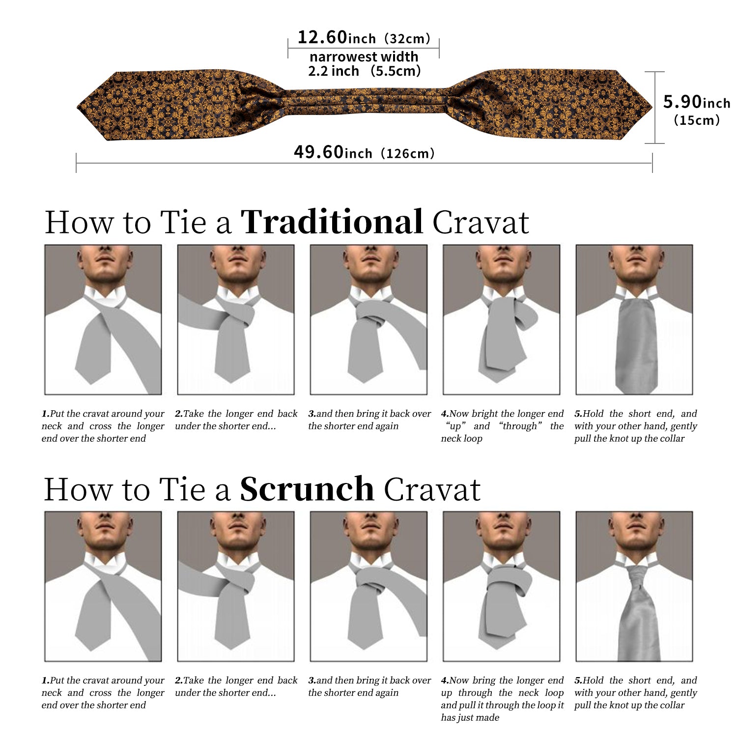 Occasions: Easy to fit with an open collar shirt, you can wear a cravat self tie to a wedding, party, business, formal, casual, dating occasions Warm Tips: Recommended to be hand washed, hold up well after washing. Do not bleach, low ironing if necessary