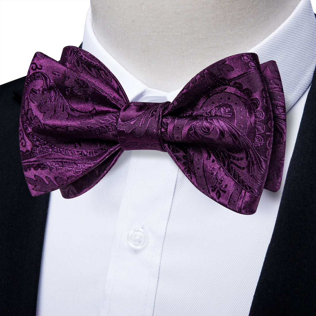 Purple Floral Self-Bowtie Pocket Square Cufflinks Set