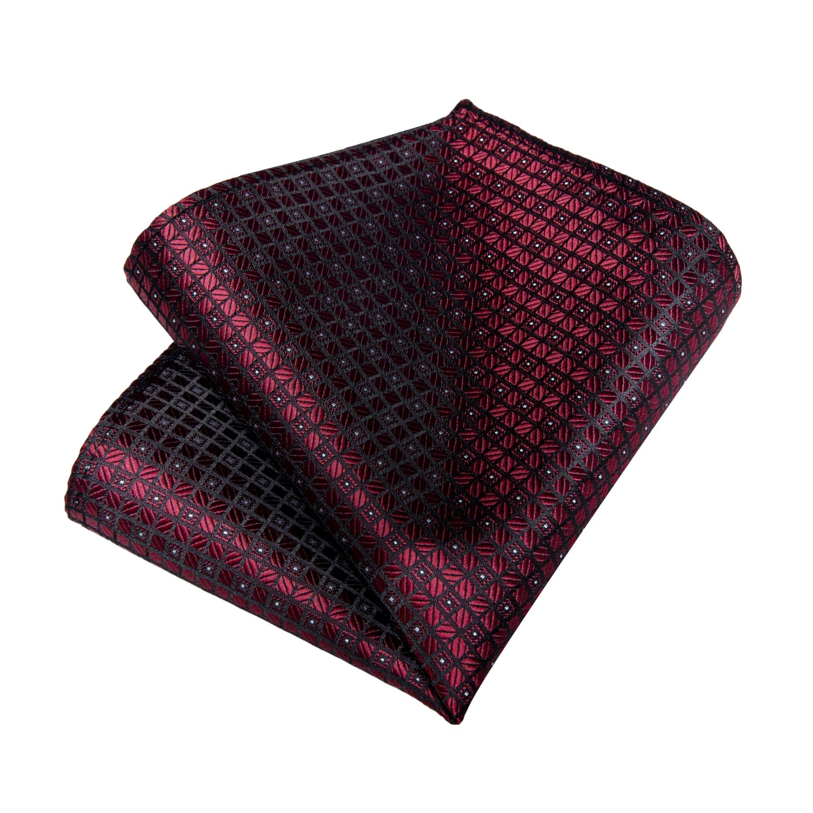 DiBanGu Dress Tie Burgundy Plaid Men's Silk Tie Pocket Square Cufflinks Clip Set