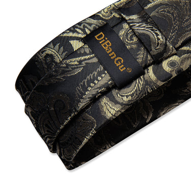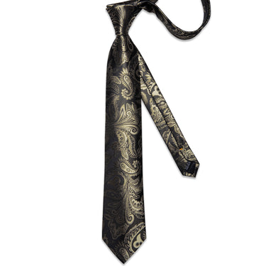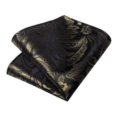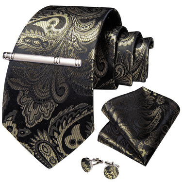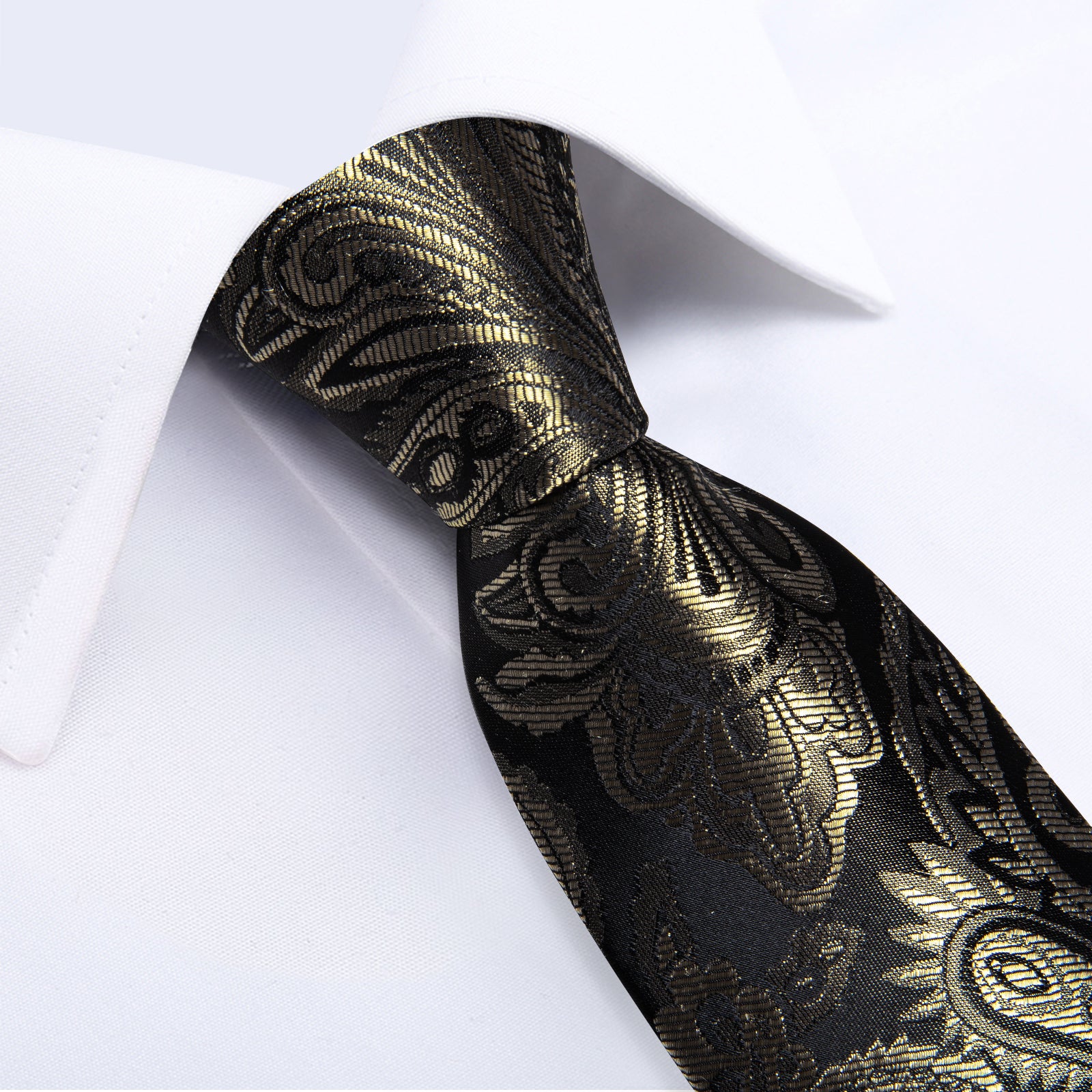 Champagne Gold Floral Men's Tie Handkerchief Cufflinks Clip Set