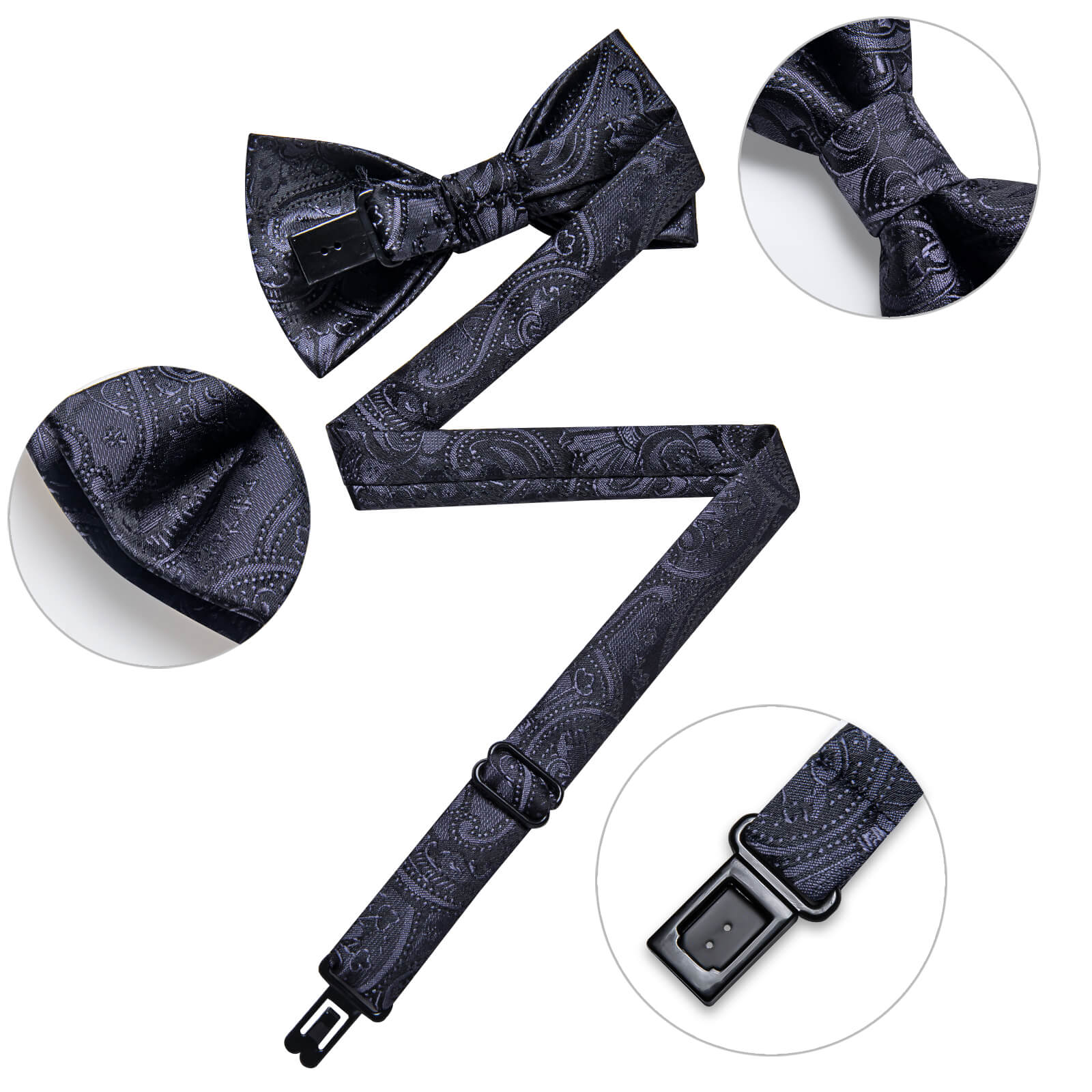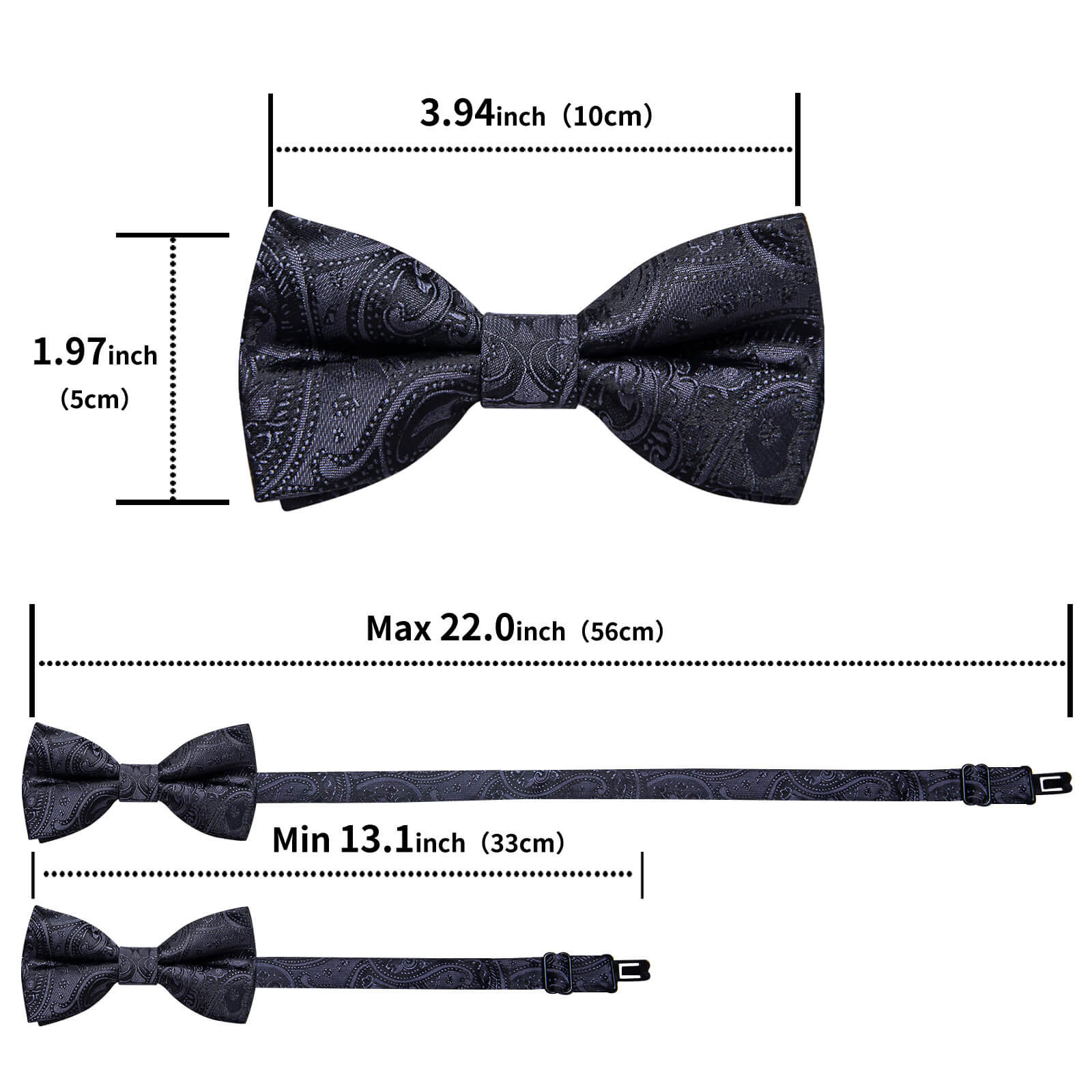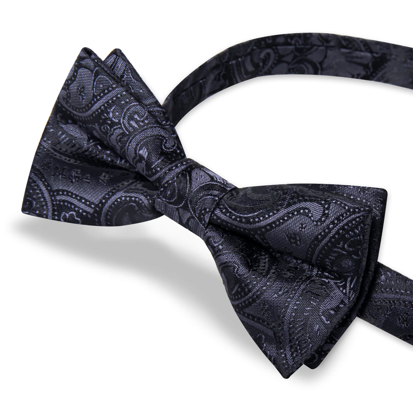 DiBanGu Kids Bow Tie Iron Grey Paisley Silk Pre-Bow Tie Hanky Set