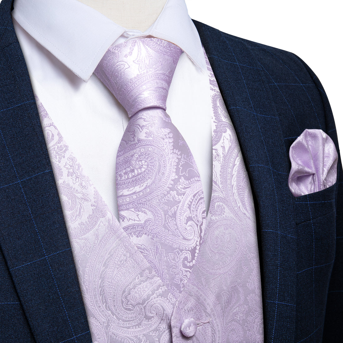 Violet Ash Floral Jacquard Silk Waistcoat Vest Tie Pocket Square Cufflinks Set