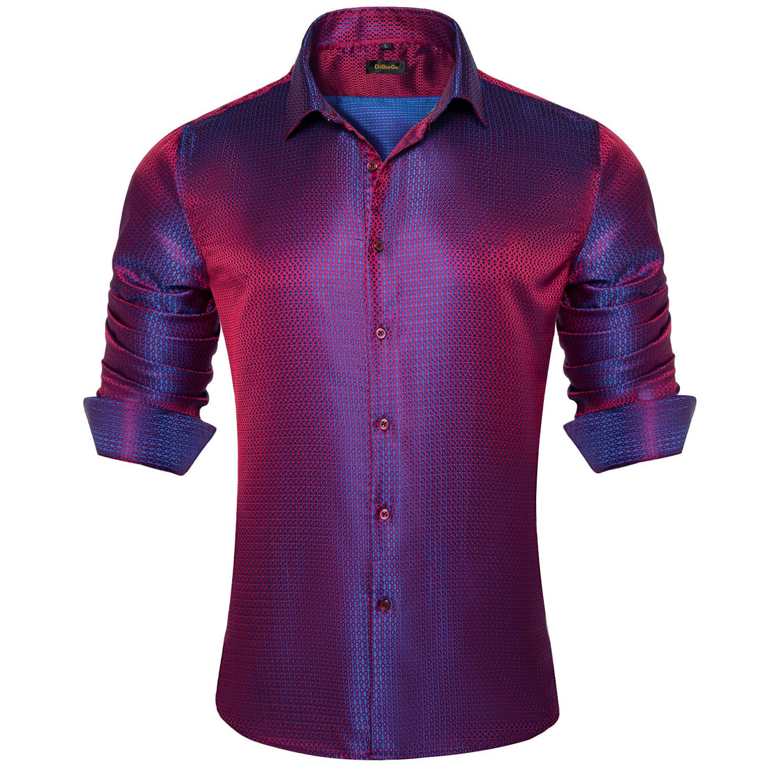 DiBanGu Tuxedo Shirt Blue Red Geometric Silk Button Up Men's Long Sleeve Dress Shirt