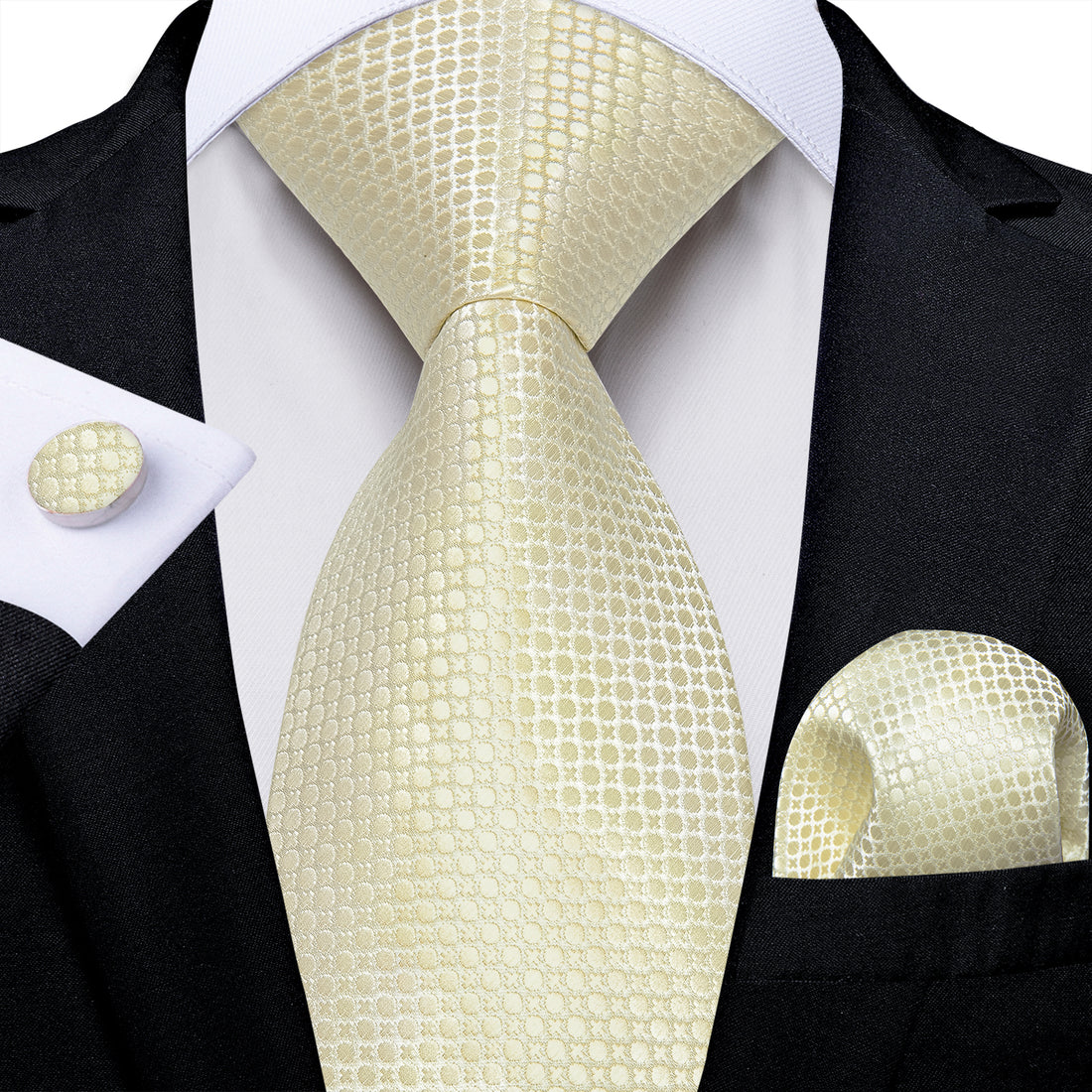 Champagne Golden Geometric Silk Bowtie Pocket Square Cufflinks Set