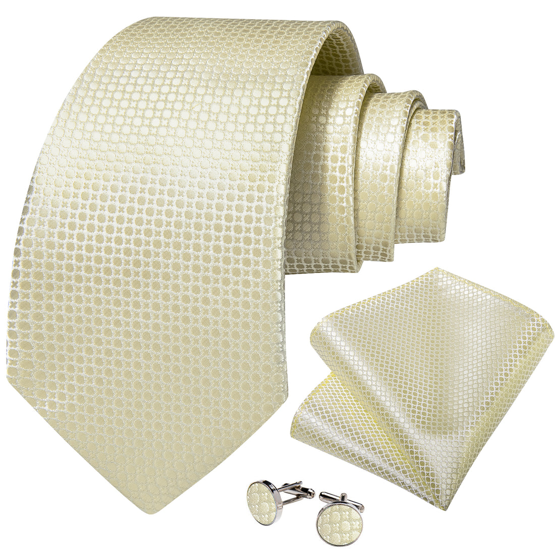 Yellow Geometric Tie Silk Men's Necktie Handkerchief Cufflinks Set With GEM Lapel Pin Brooch Set