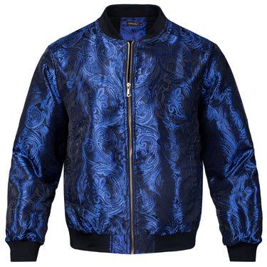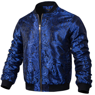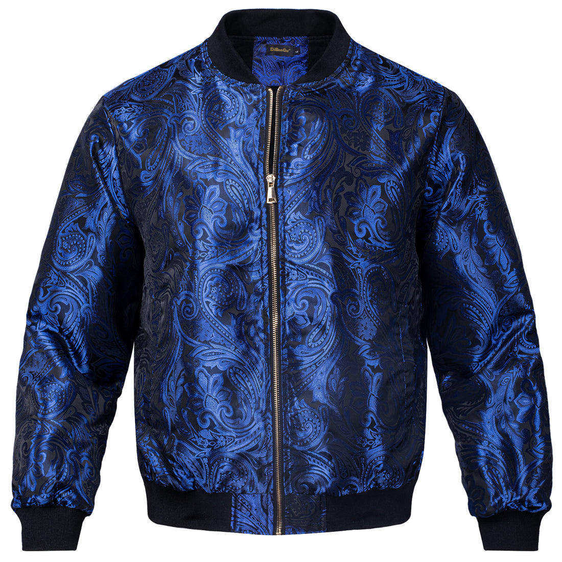 DiBanGu Canal Blue Paisley Men's Jacquard Light Casual Jacket
