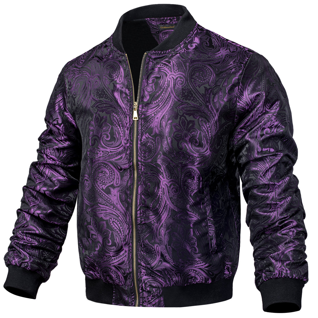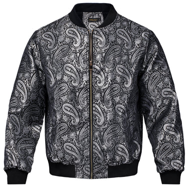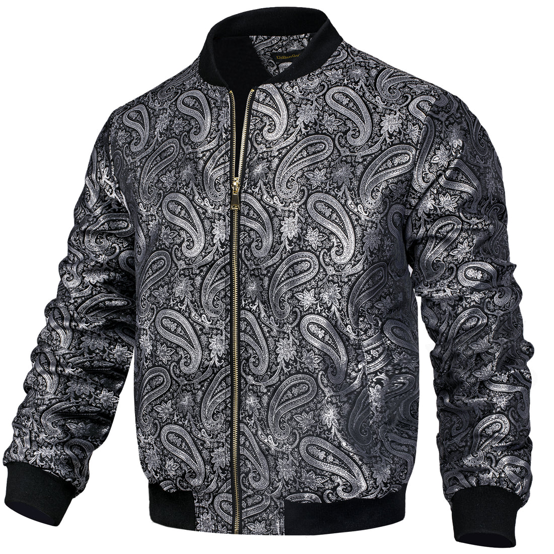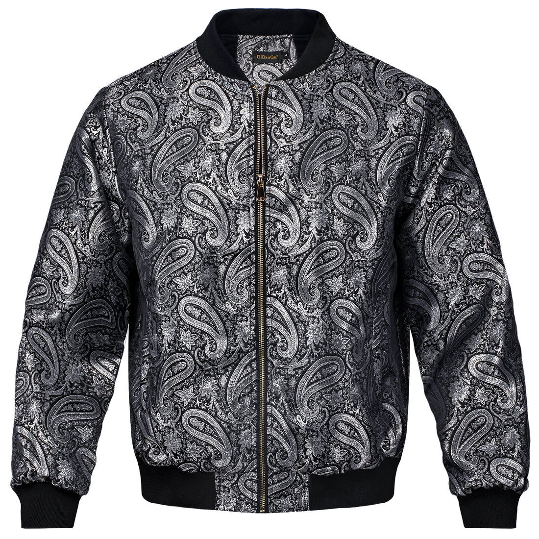 DiBanGu Black Silver Paisley Men's Jacquard Light Casual Jacket