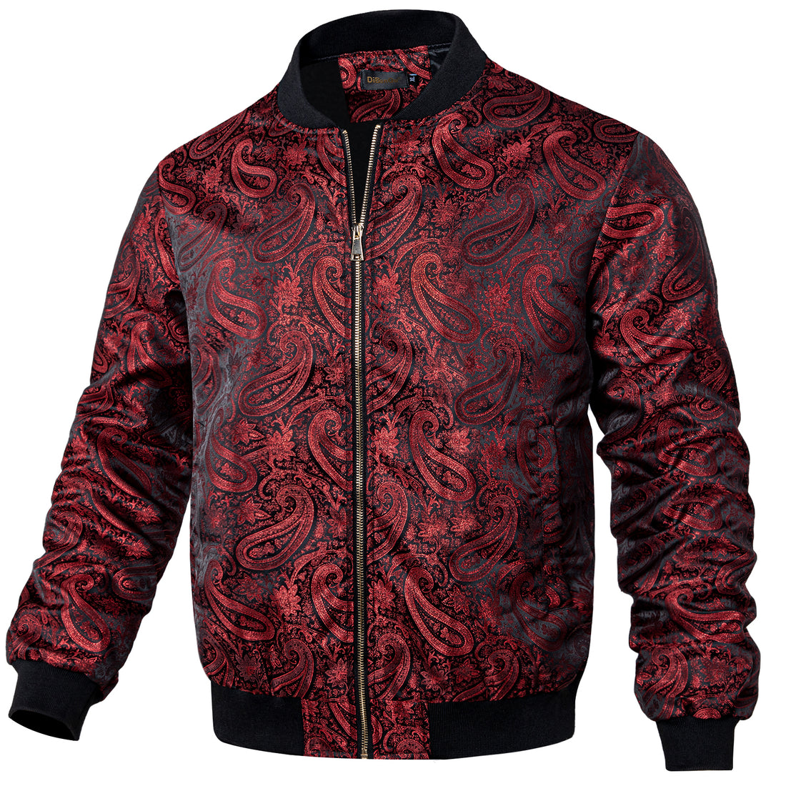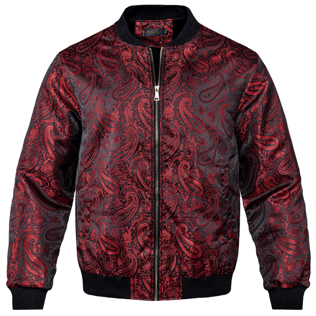 DiBanGu Red Paisley Men's Jacquard Light Casual Jacket