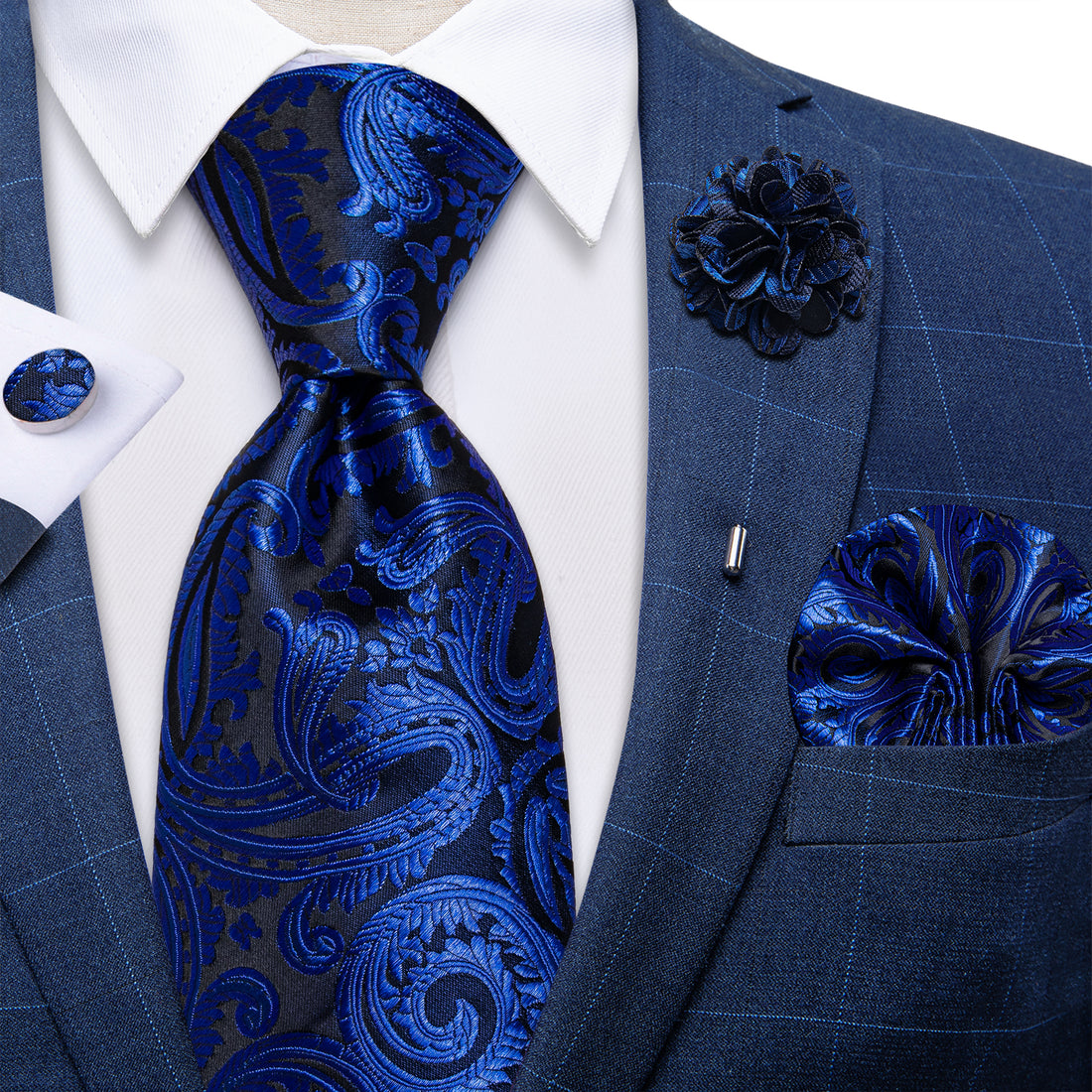 【PURCHASE CONTAINS】Silk Necktie + Pocket Square + Cufflinks + Lapel Pin+ Gift box.It's a proper...