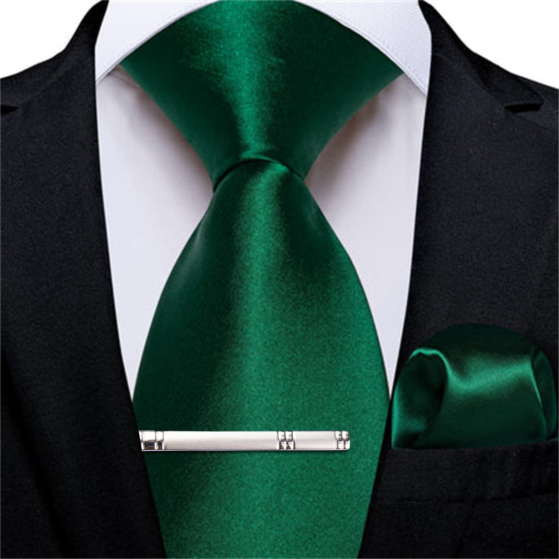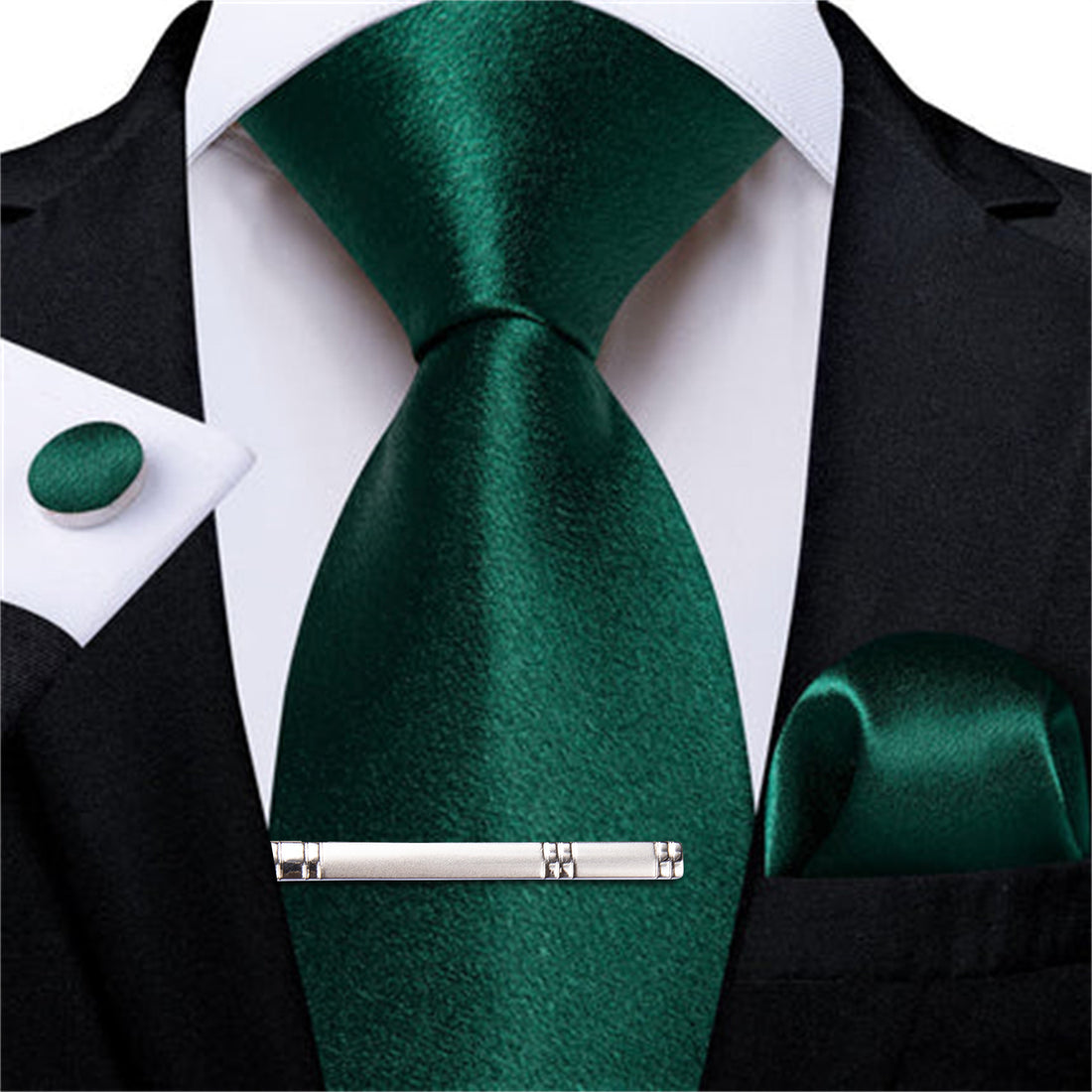 DiBanGu Silk Tie Shining Deep Green Solid Mens Formal Work Dresses Tie Handkerchief Cufflinks Clip Set