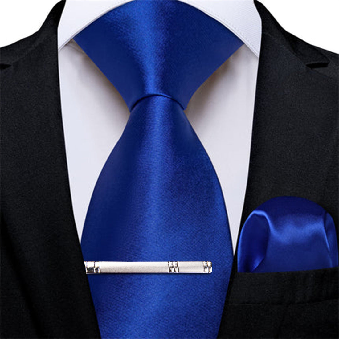 DiBanGu Silk Tie Shining Denim Blue Solid Mens Tuxedo Work Dresses Tie Handkerchief Cufflinks Clip Set