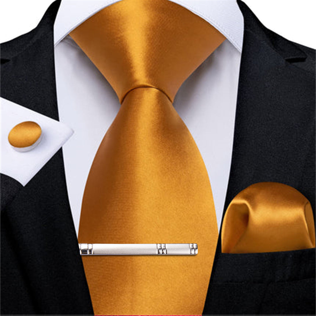 DiBanGu Silk Tie Shining Pure Gold Solid Mens Formal Dress Tie Handkerchief Cufflinks Clip Set
