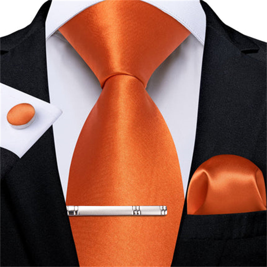 DiBanGu Silk Tie Shining Hot Orange Solid Mens Formal Dress Tie Handkerchief Cufflinks Clip Set