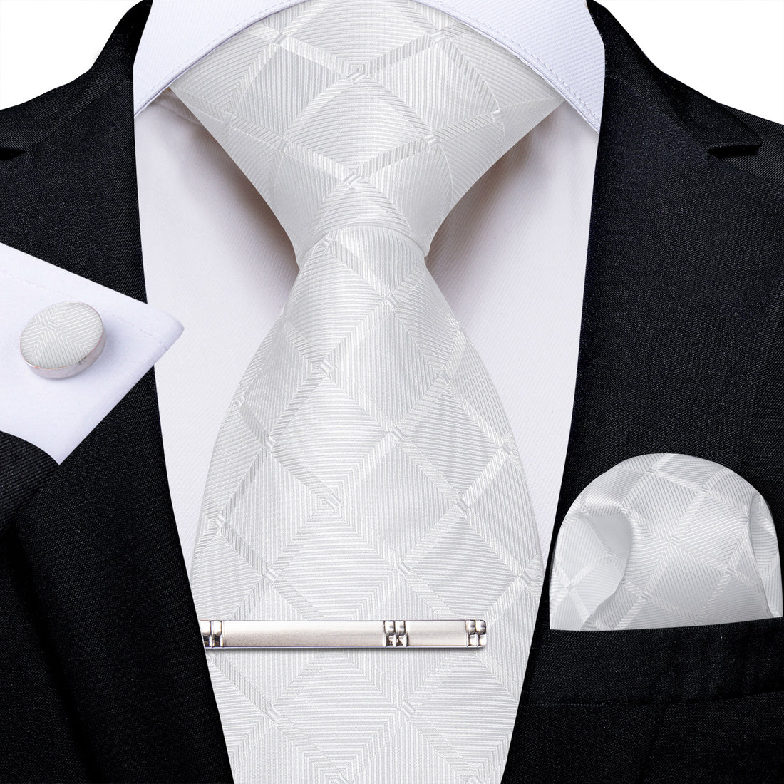 【PURCHASE CONTAINS】Silk Necktie + Woven Pocket Square + Cufflinks + Silver Tie Clip+ Gift Box.It's...