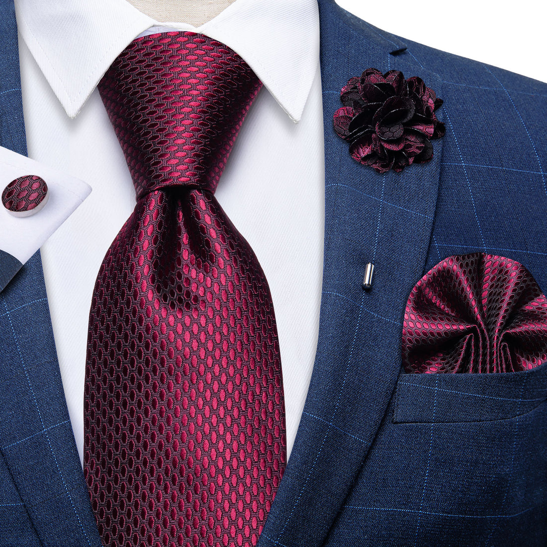 【PURCHASE CONTAINS】Silk Necktie + Pocket Square + Cufflinks + Lapel Pin+ Gift box.It's a proper...