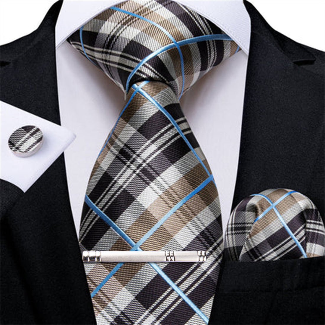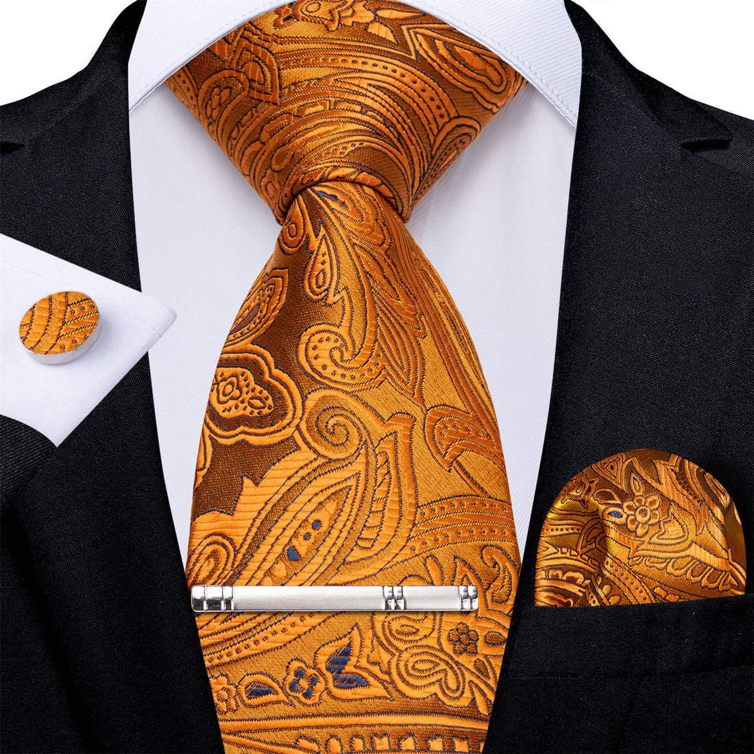 【PURCHASE CONTAINS】Silk Necktie + Woven Pocket Square + Cufflinks + Silver Tie Clip+ Gift Box.It's...