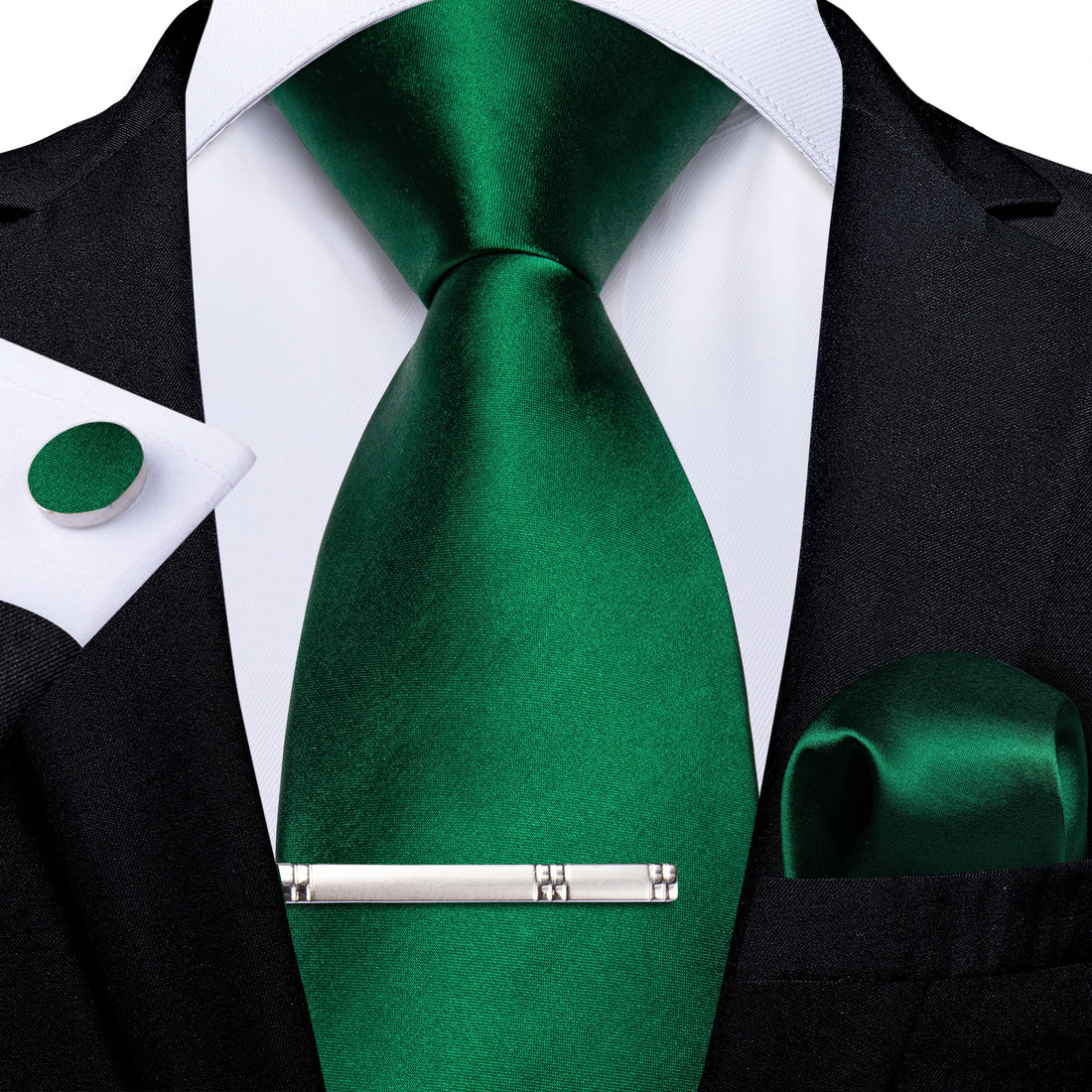 Green Solid Men's Tie Handkerchief Cufflinks Clip Set