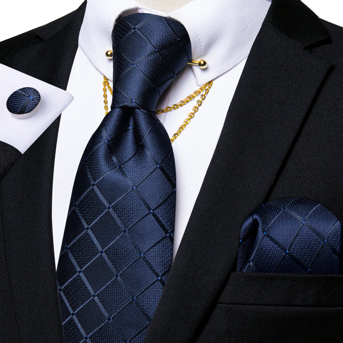 【PURCHASE CONTAINS】Silk Necktie + Pocket Square + Cufflinks + Lapel Pin+ Gift box.It's a proper...