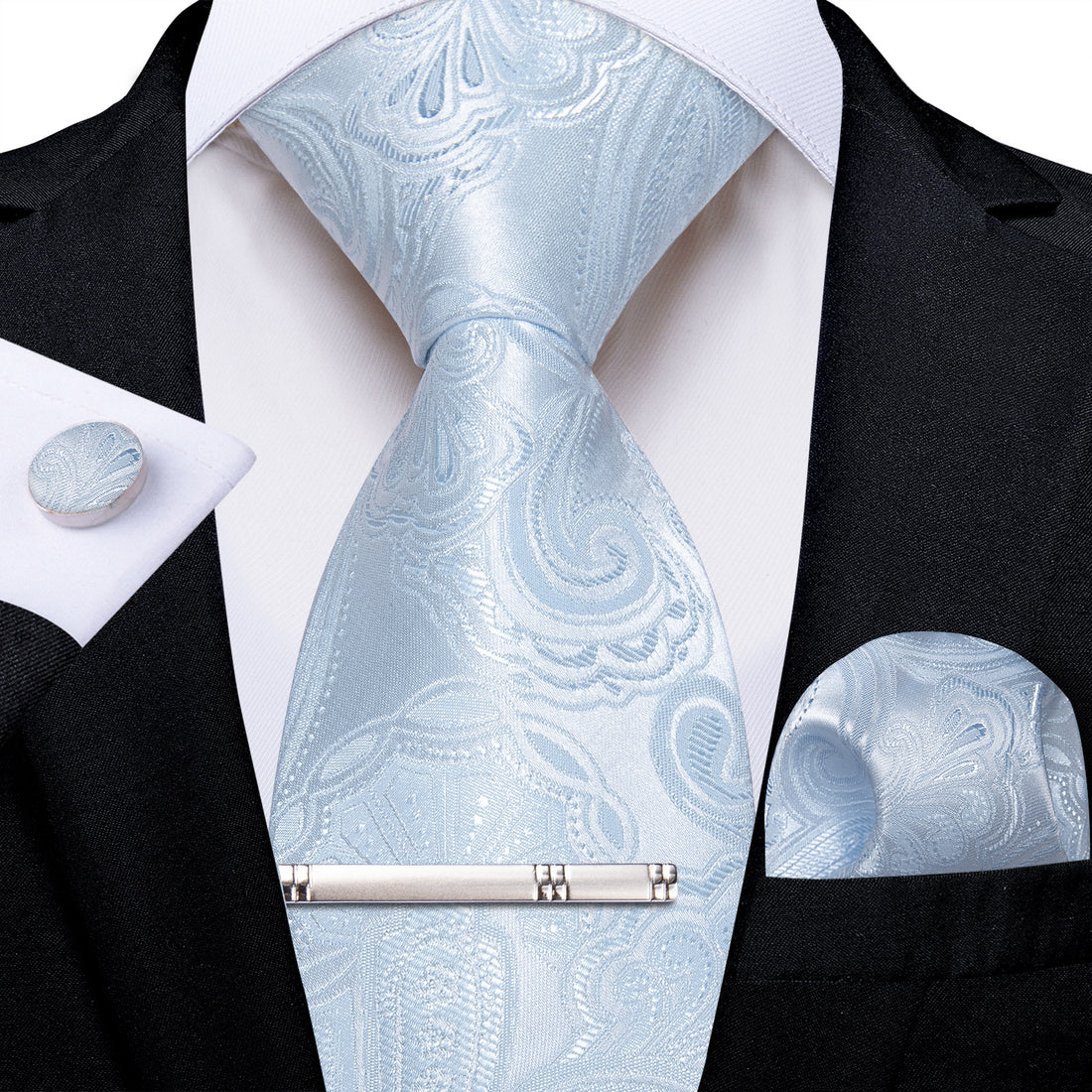 【PURCHASE CONTAINS】Silk Necktie + Woven Pocket Square + Cufflinks + Silver Tie Clip+ Gift Box.It's...