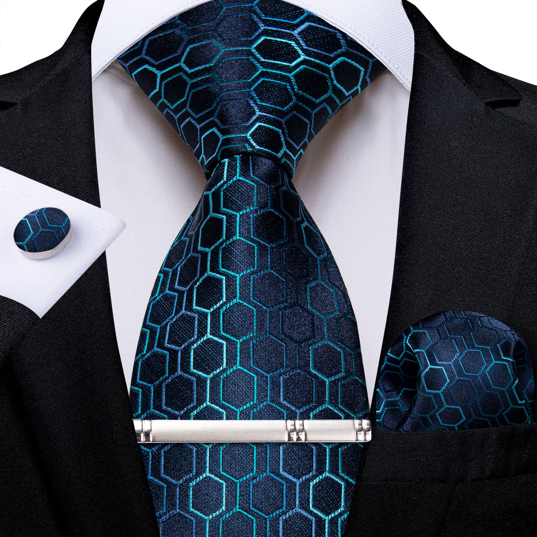 【PURCHASE CONTAINS】Silk Necktie + Woven Pocket Square + Cufflinks + Silver Tie Clip+ Gift Box.It's...