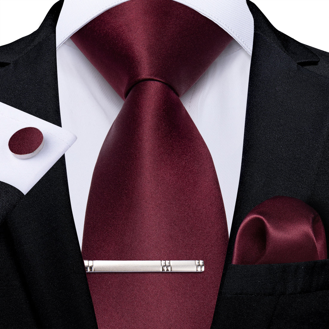 Claret Solid Men's Tie Handkerchief Cufflinks Clip Set