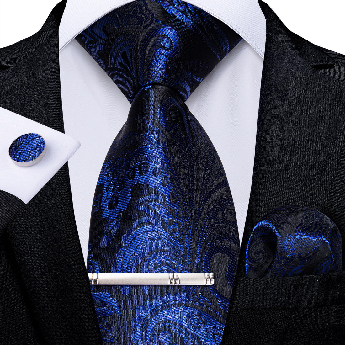 【PURCHASE CONTAINS】Silk Necktie + Woven Pocket Square + Cufflinks + Silver Tie Clip+ Gift Box.It's...