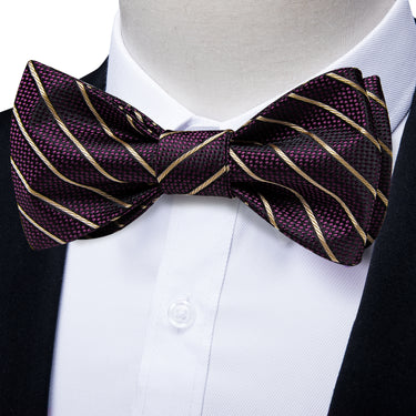 Novelty Purple Brown Self-Bowtie Pocket Square Cufflinks Set