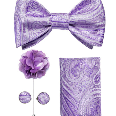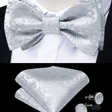 Silver Paisley Self-Bowtie Pocket Square Cufflinks Set