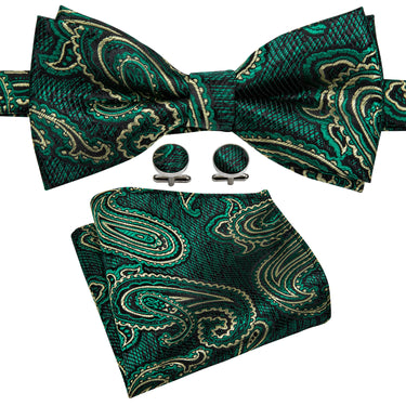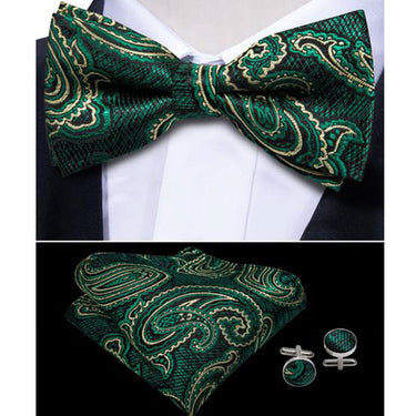 Green Red Paisley Self-Bowtie Pocket Square Cufflinks Set