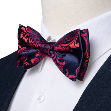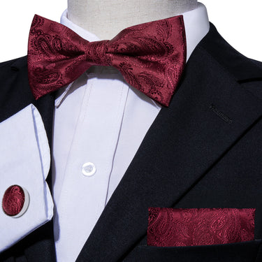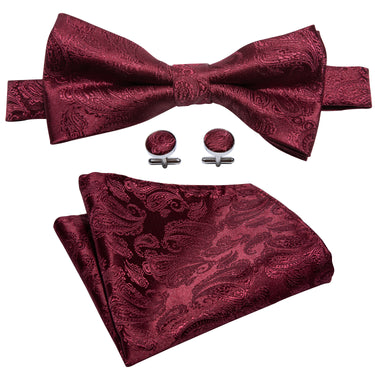 Wine Red Paisley Bowtie Pocket Square Cufflinks Set