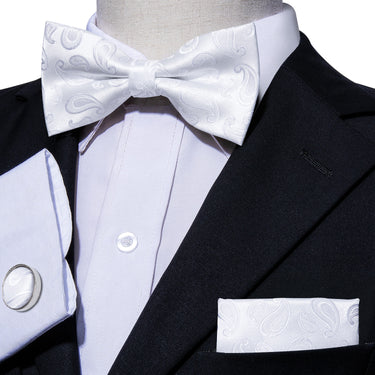White Paisley Bowtie Pocket Square Cufflinks Set