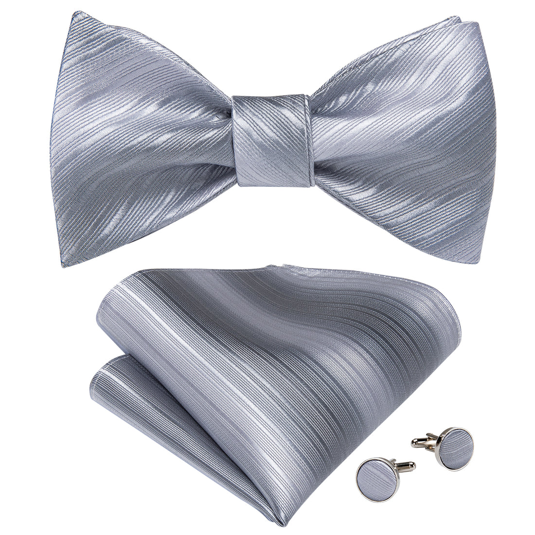 Grey Plaid Silk Self-Bowtie Pocket Square Cufflinks Set