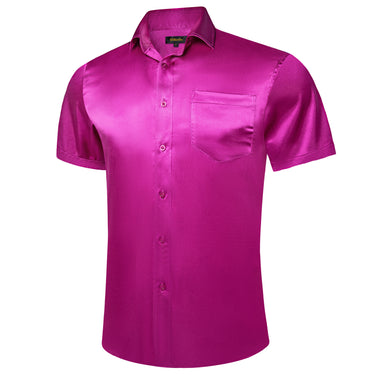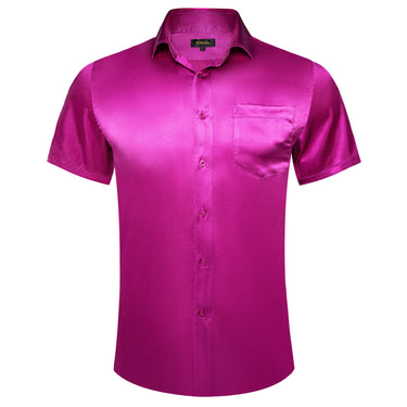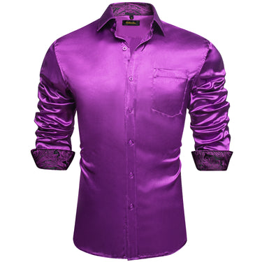 DiBanGu Men's Purple Satin Floral Panel Dress Shirt