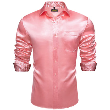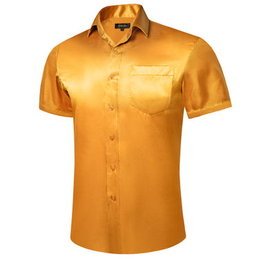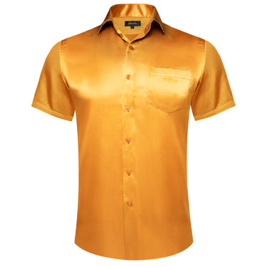 DiBanGu Tuxedo Shirt Tan Brown Solid Satin Silk Button Up Long Sleeve Shirt for Men
