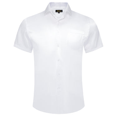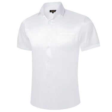 DiBanGu Collar Shirt Antique White Satin Splicing Solid Button Down Shirt for Mens Wedding