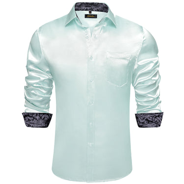 DiBanGu Men's Mint Green Satin Solid Shirt