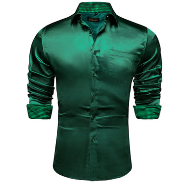 DiBanGu Men's Green Satin Dress Shirt For Men