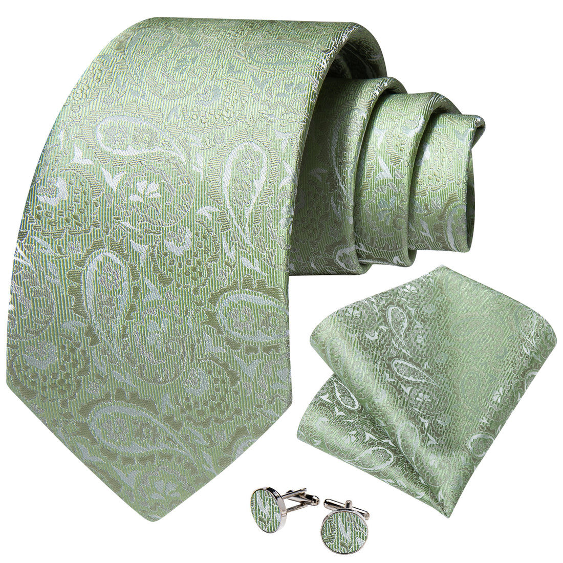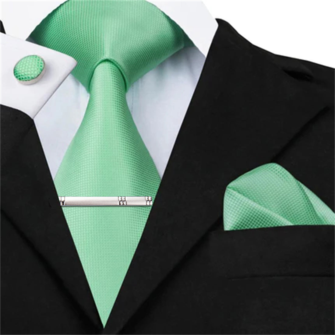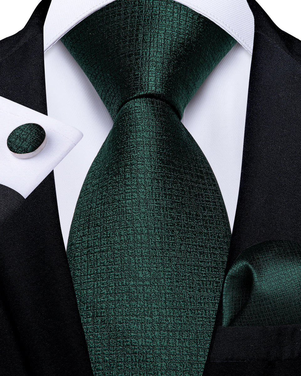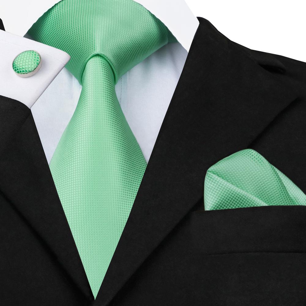 Shining Green Novelty Tie Pocket Square Cufflinks Clip Set