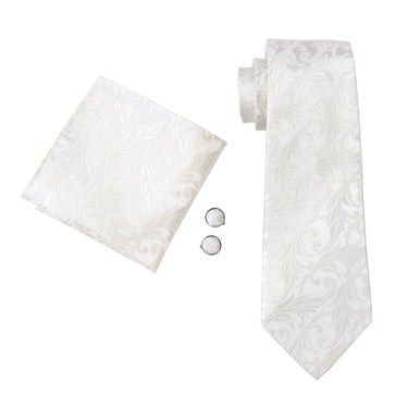 Pure White Floral Tie Hanky Cufflinks Clip Set