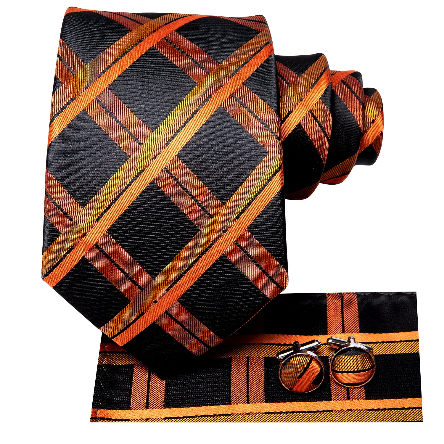 【Package Contains】1Pcs Silk Necktie, 1Pcs Pocket Square, 1Pairs Cufflink; packing with a black box makes the tie set a best gift for men on Valentine's Day, Father's Day, Christmas and New Year
