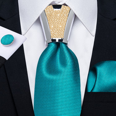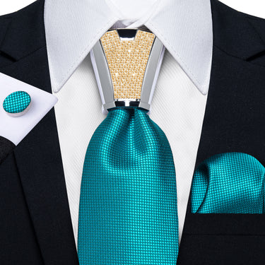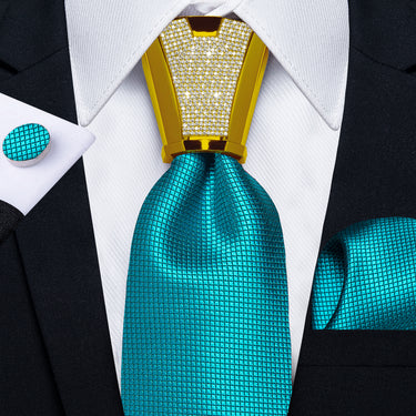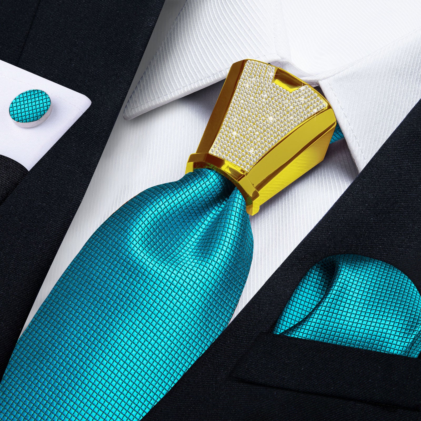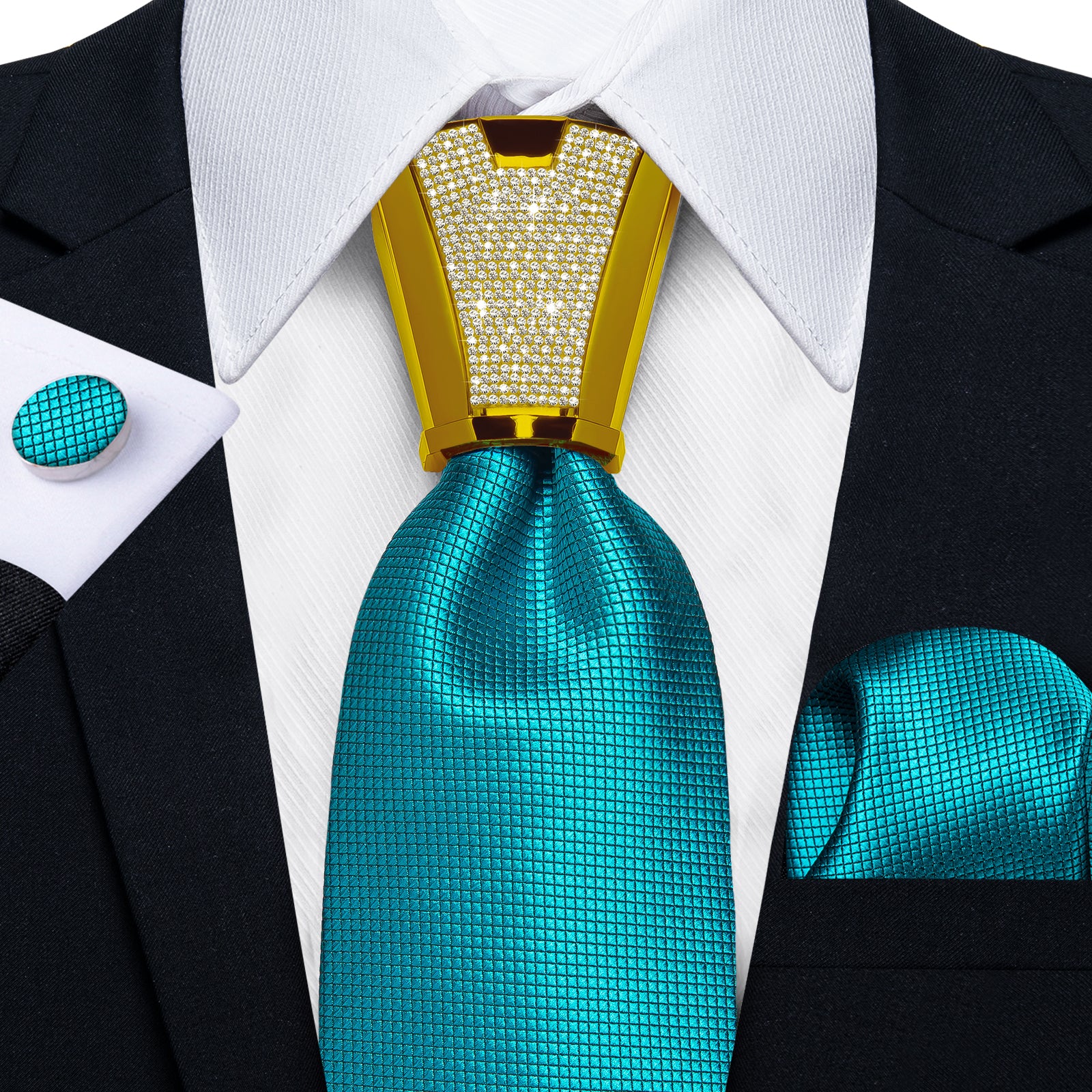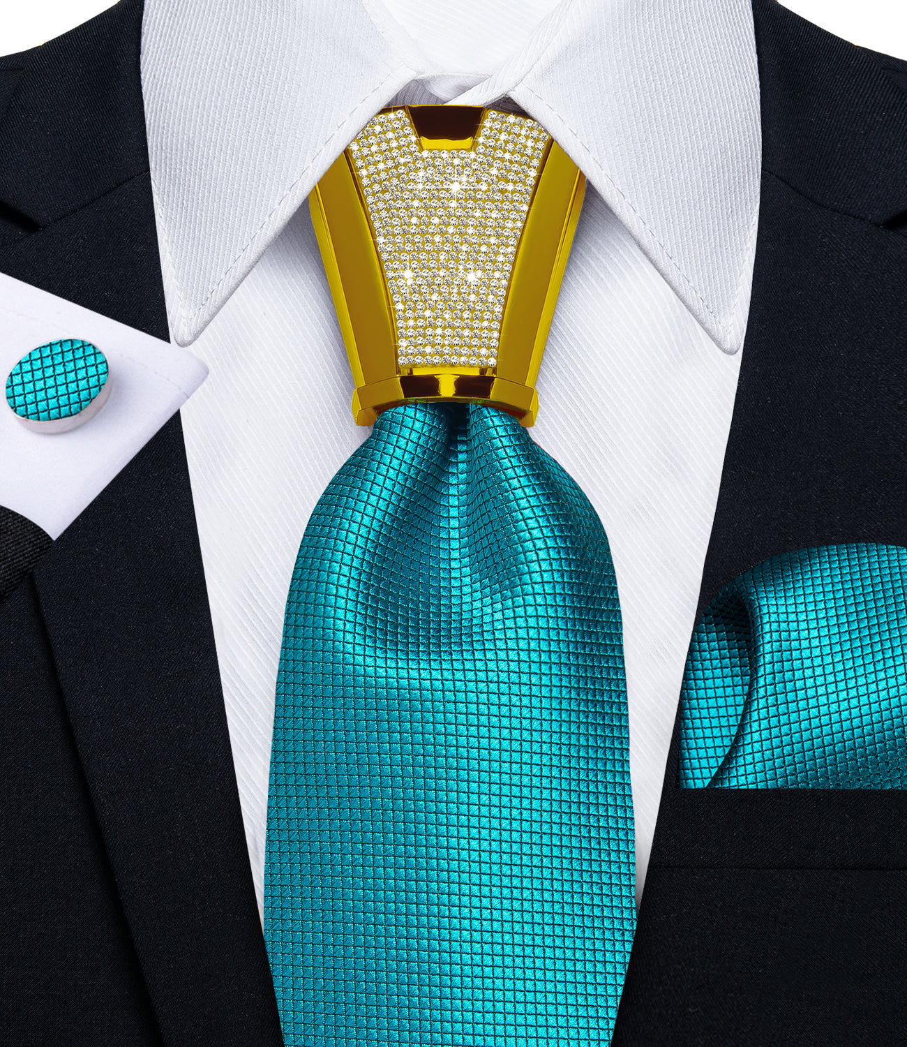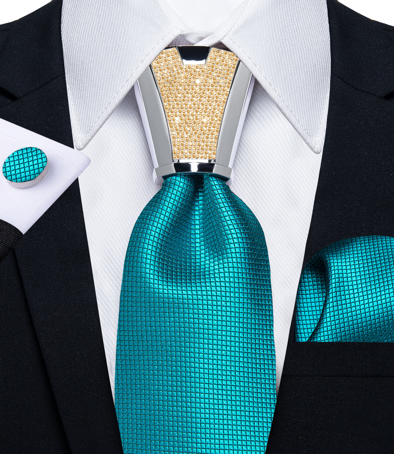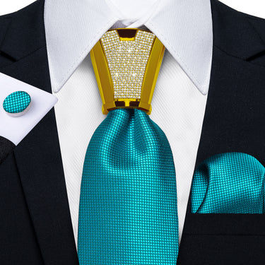 4PCS Blue solid Silk Men's Tie Handkerchief Cufflinks Accessory Set