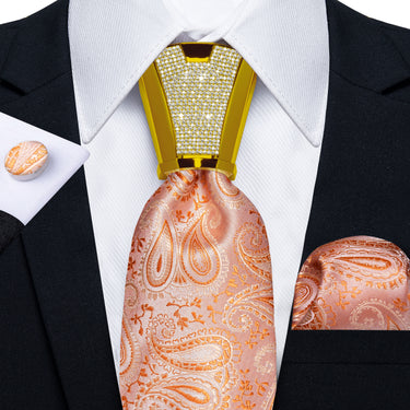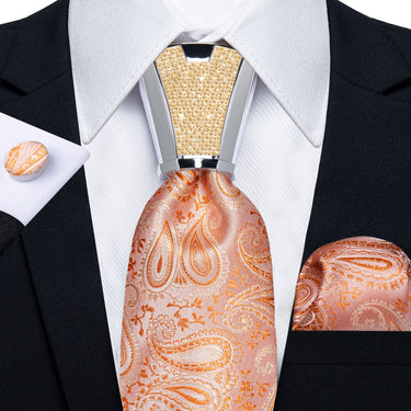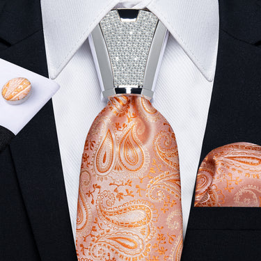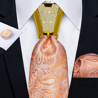 4PCS Light Orange Paisley Silk Men's Tie Handkerchief Cufflinks Accessory Set