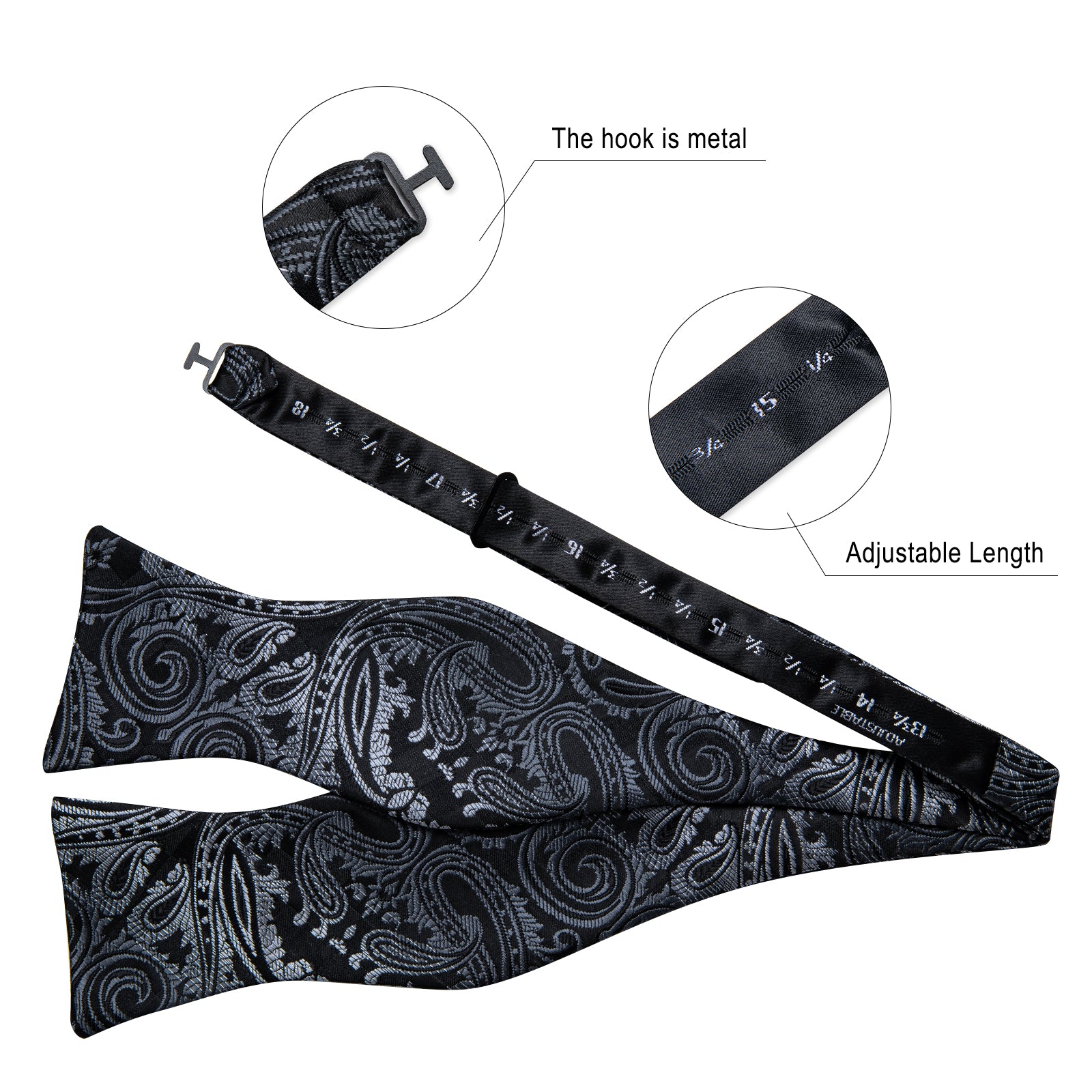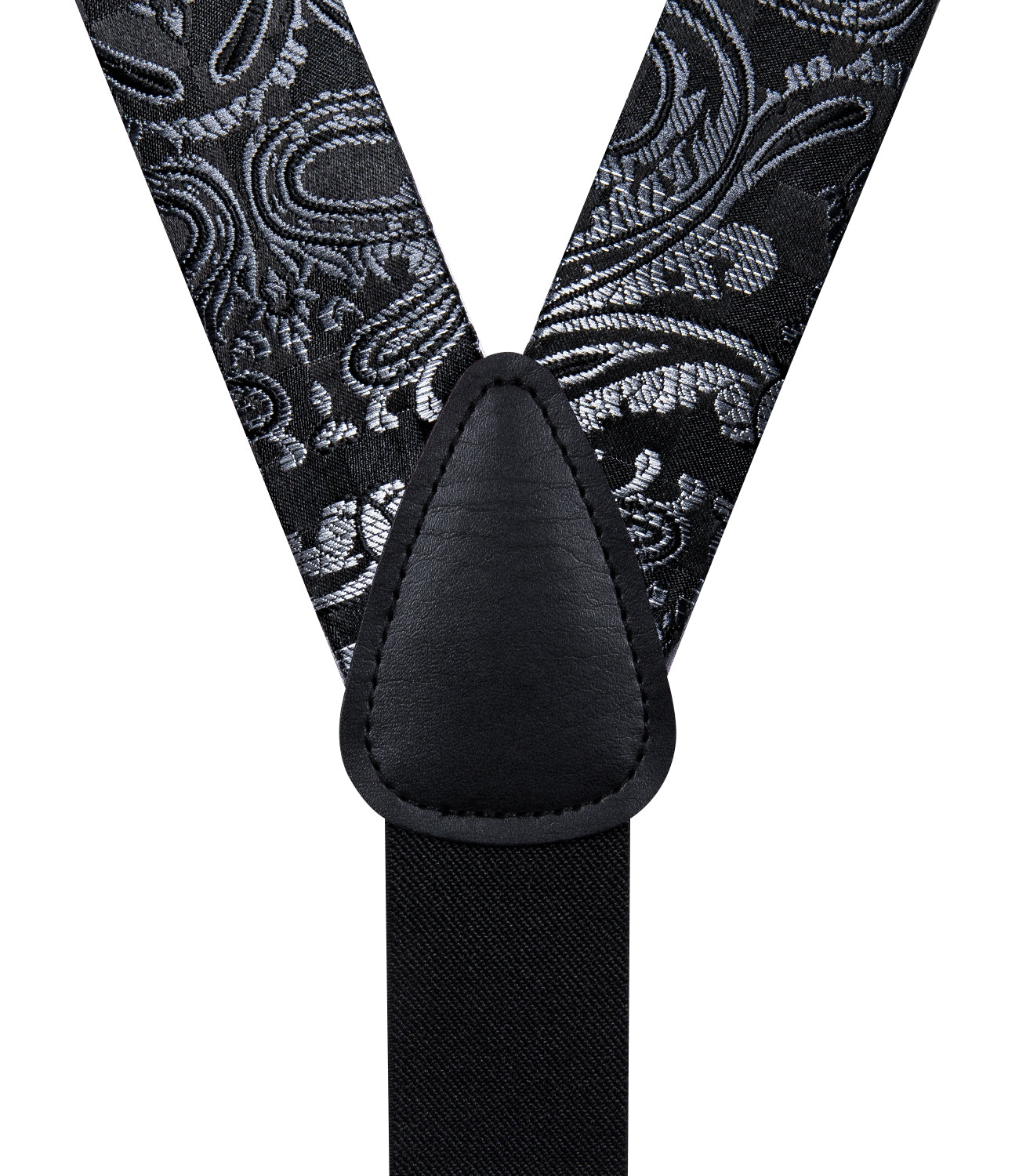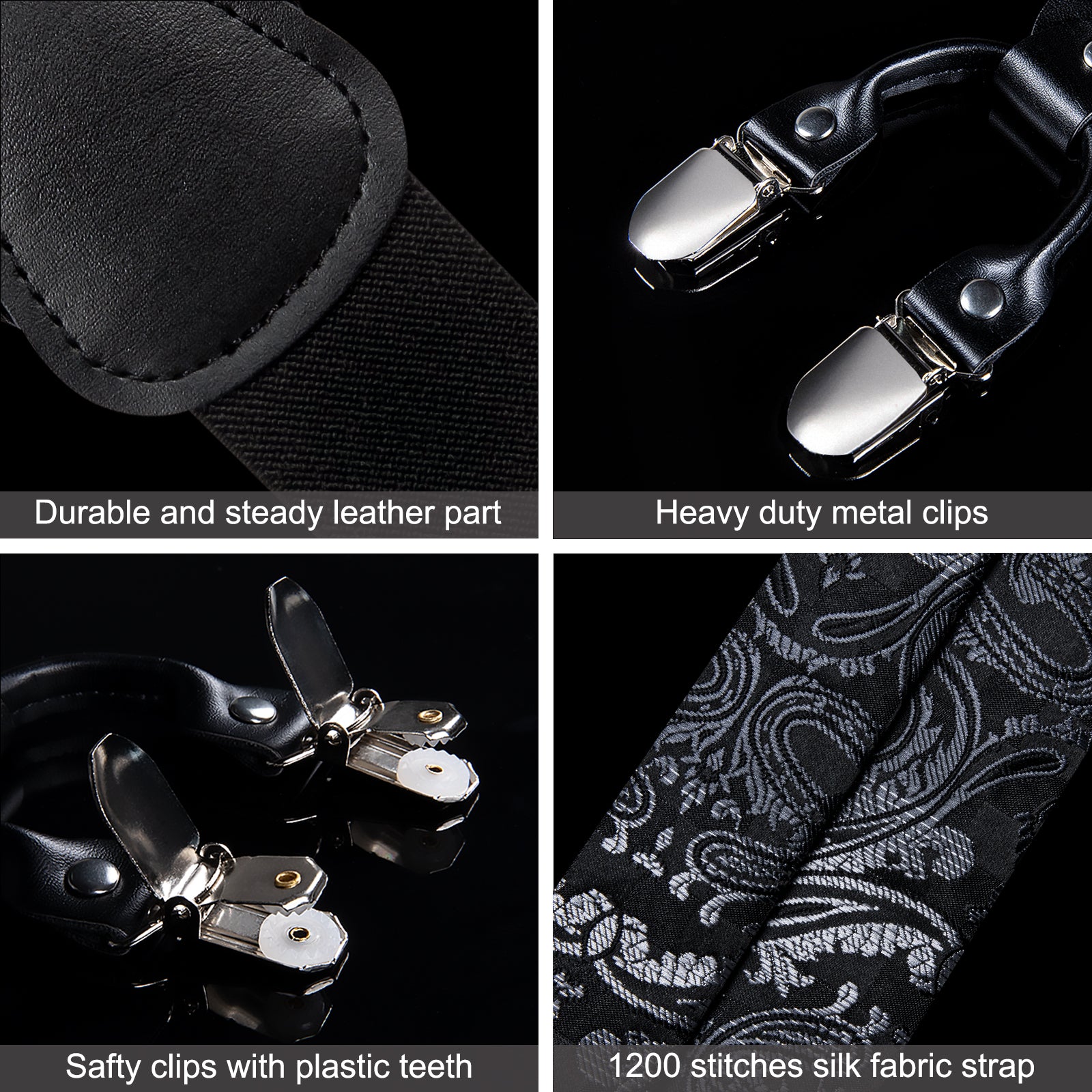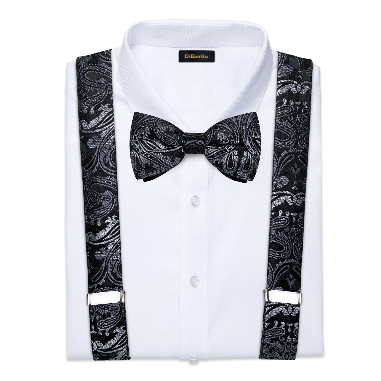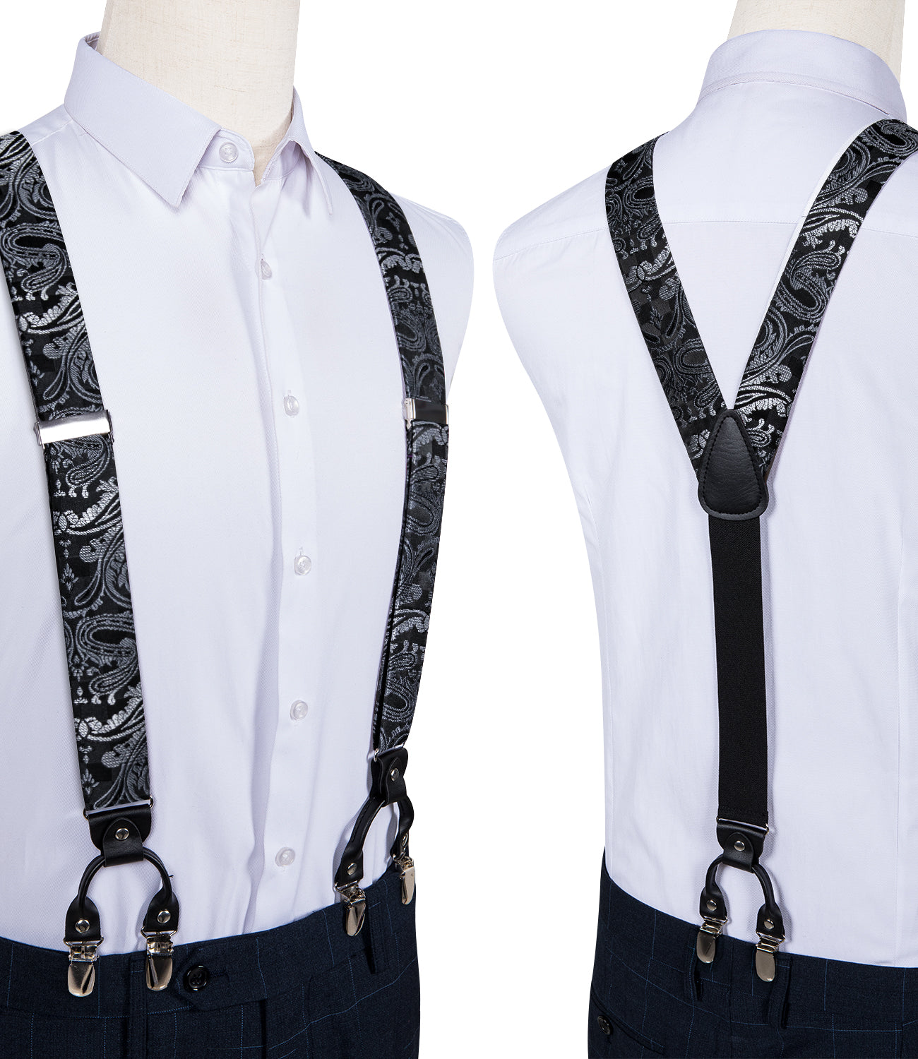 Black Silver Floral Brace Clip-on Men's Suspender with Bow Tie Set