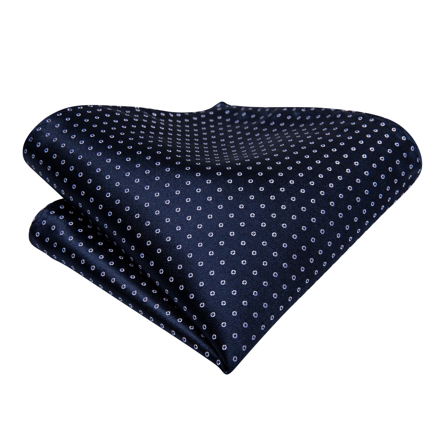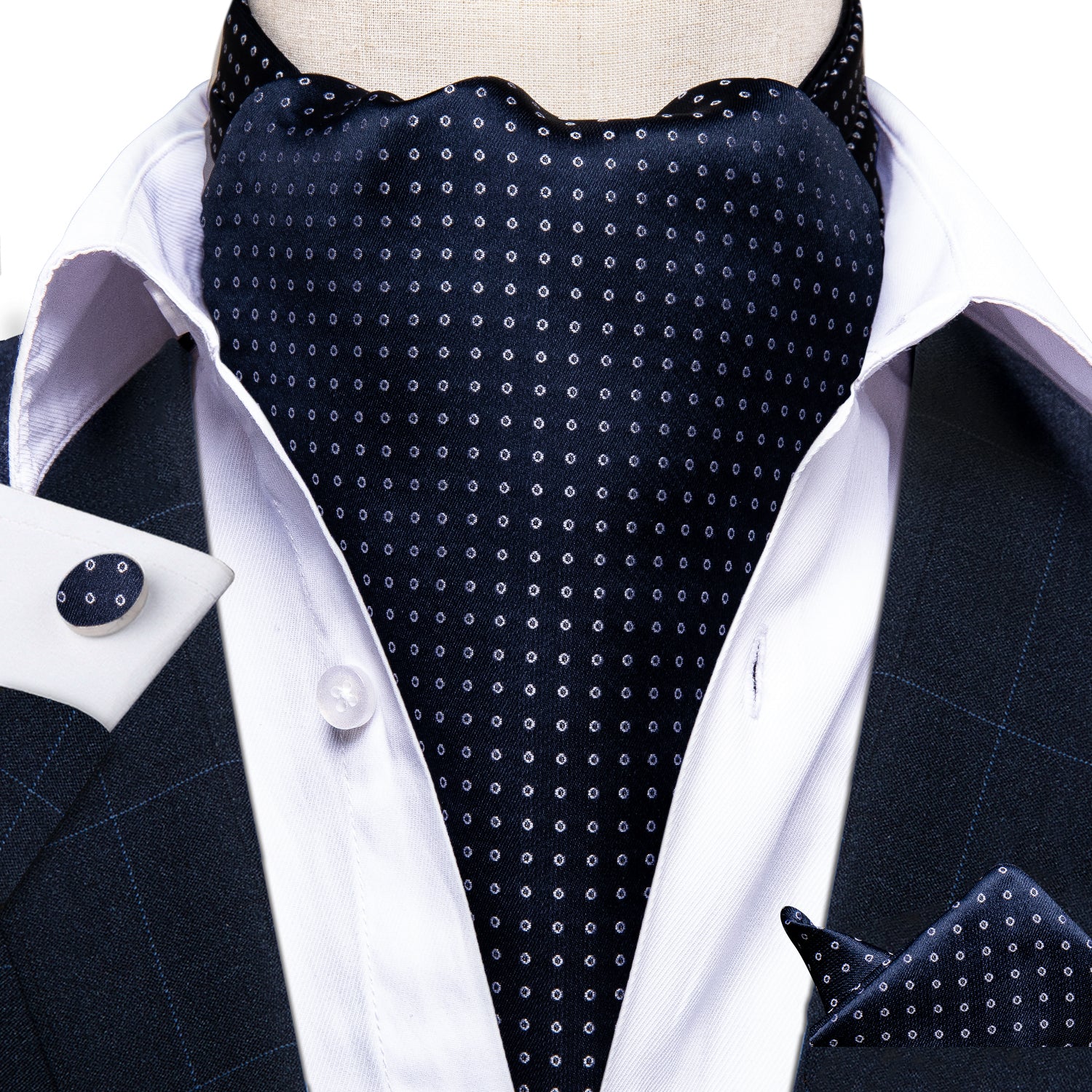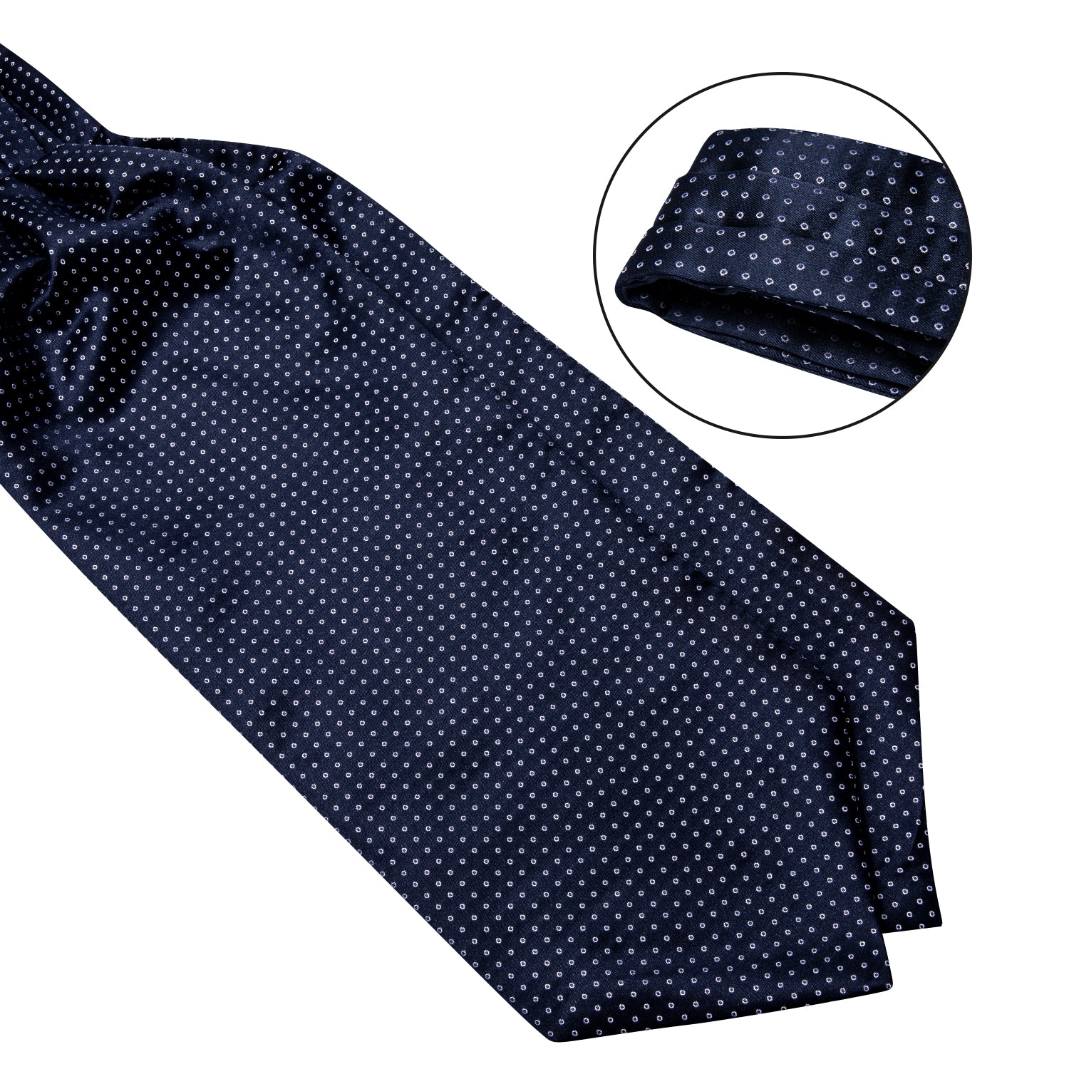 Blue and White Dots Silk Cravat Woven Ascot Tie Pocket Square Handkerchief Suit Set