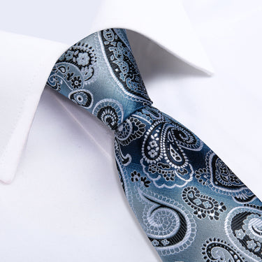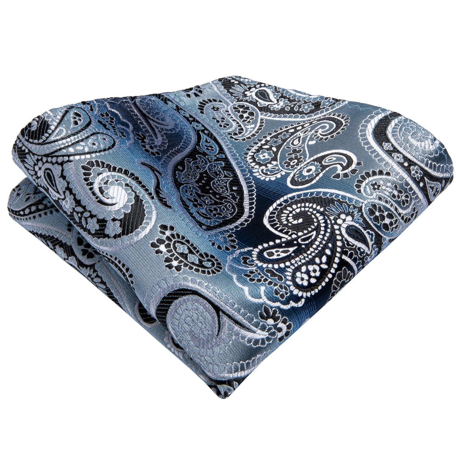 Blue Black Paisley Men's Tie Handkerchief Cufflinks Clip Set