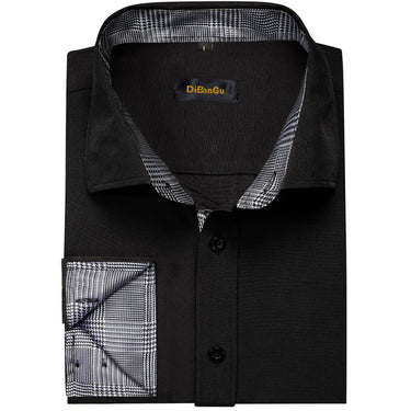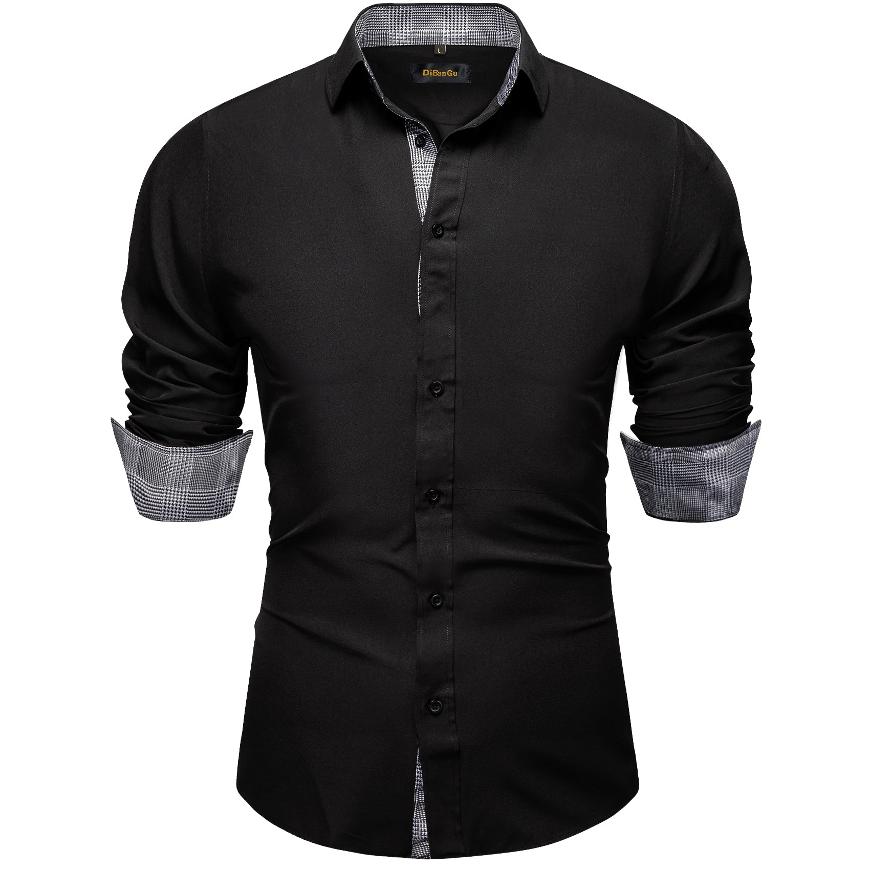 DiBanGu Black White Stripe Splicing Long Sleeve Shirt For Men