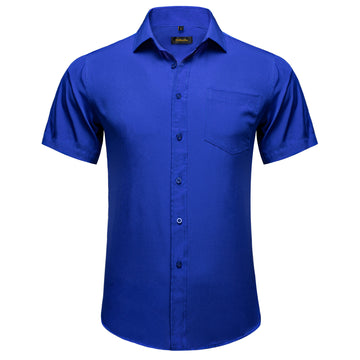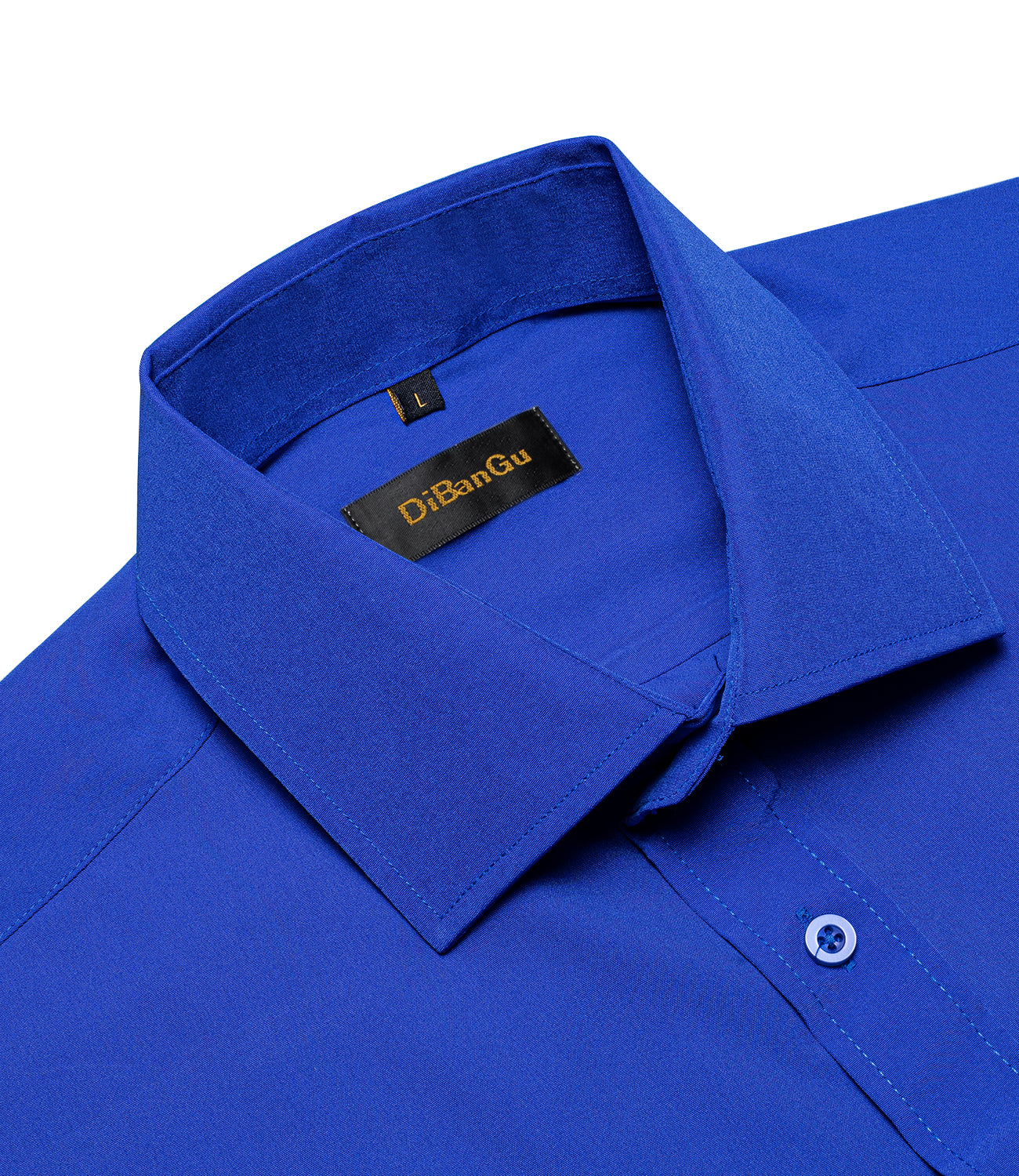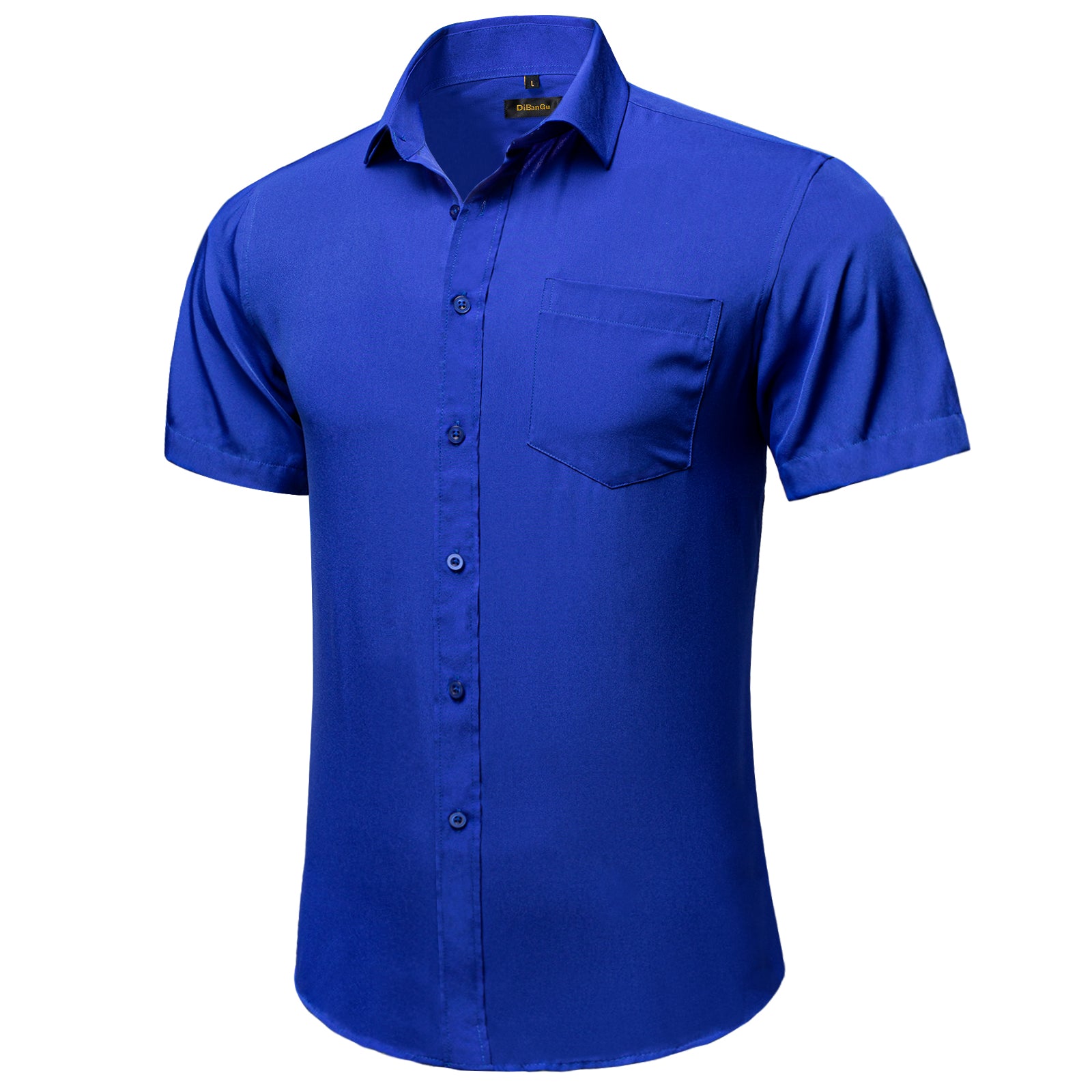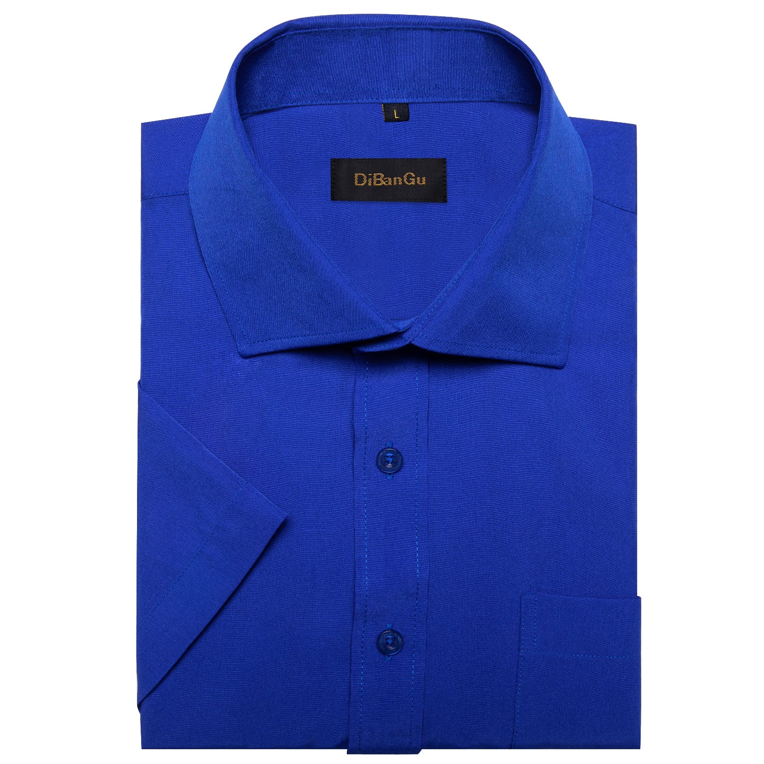 DiBanGu Blue Solid Men's Slim Short Sleeve Shirt