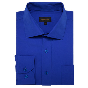 DiBanGu Blue Solid Silk Men's Business Shirt